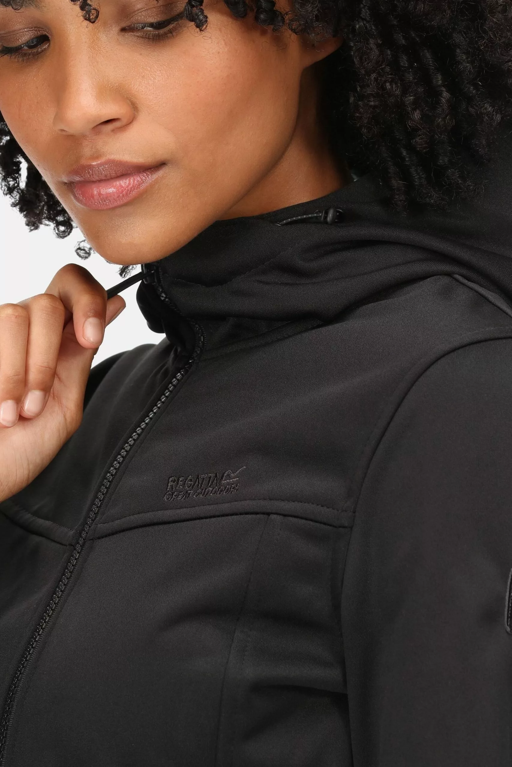 The Alerie II from Regatta. The women's softshell jacket is perfect for on-the-go protection. The wind-resistant jacket comes with a warm backing to help lock in heat. The stretch binding to the cuffs keeps the elements at bay.