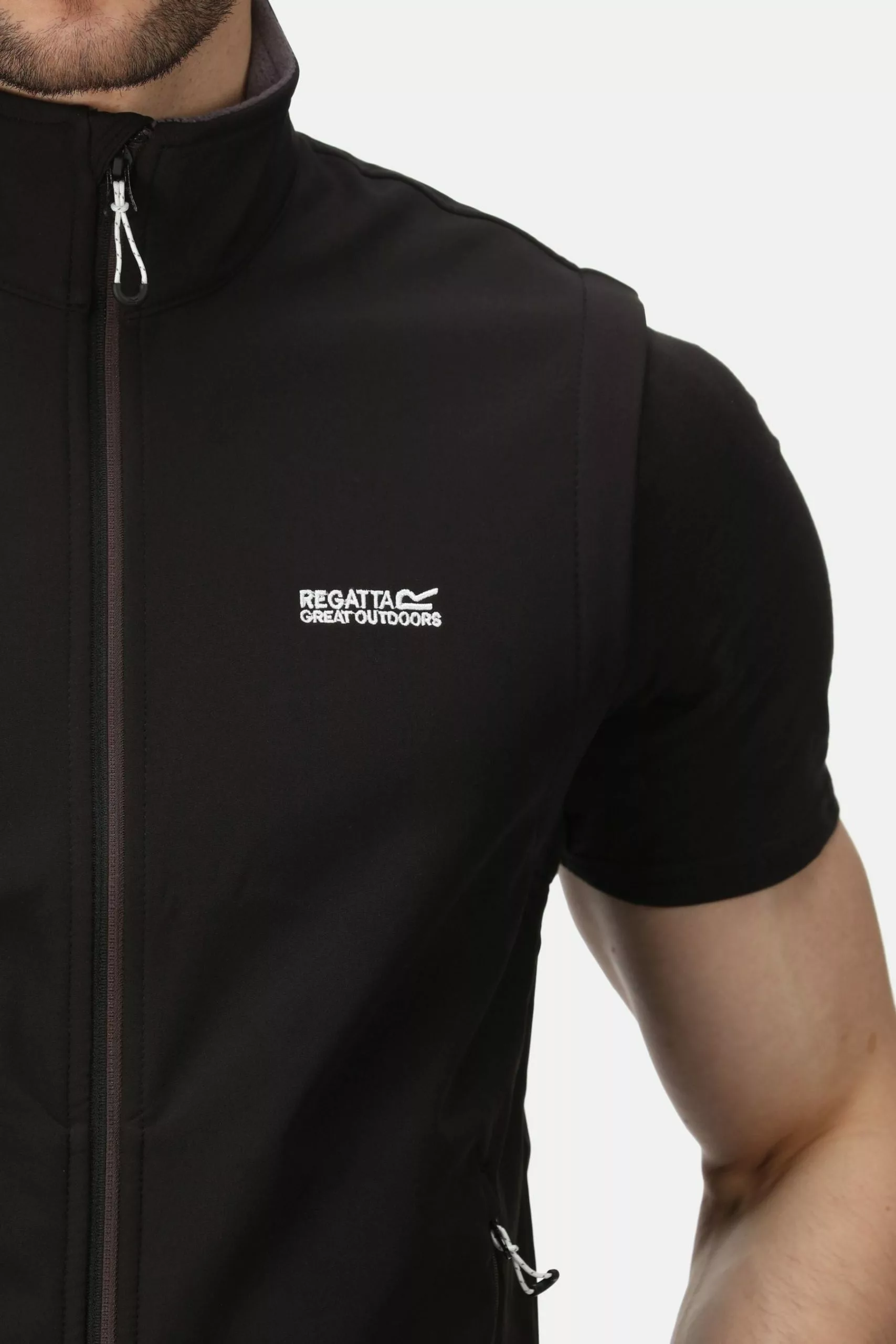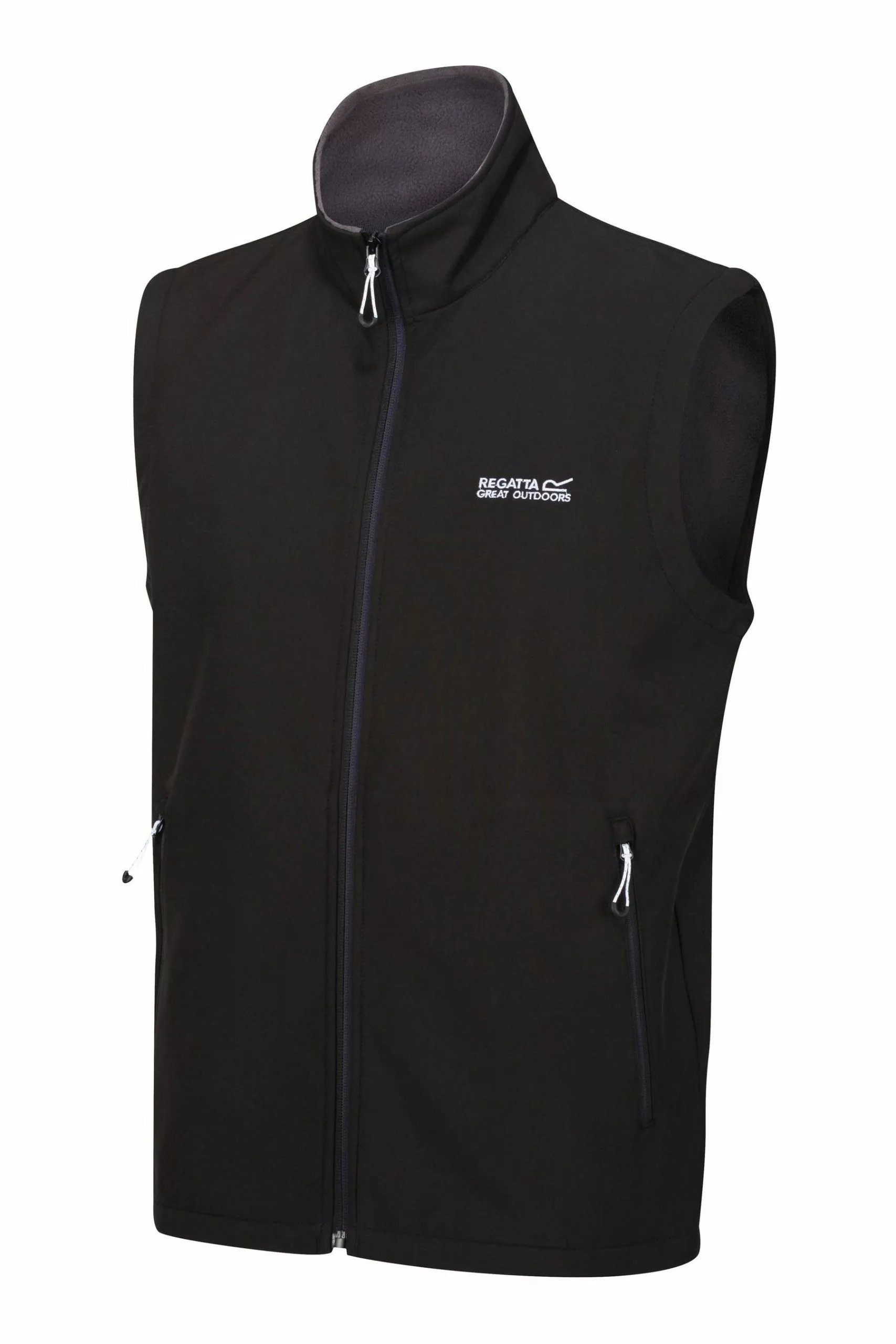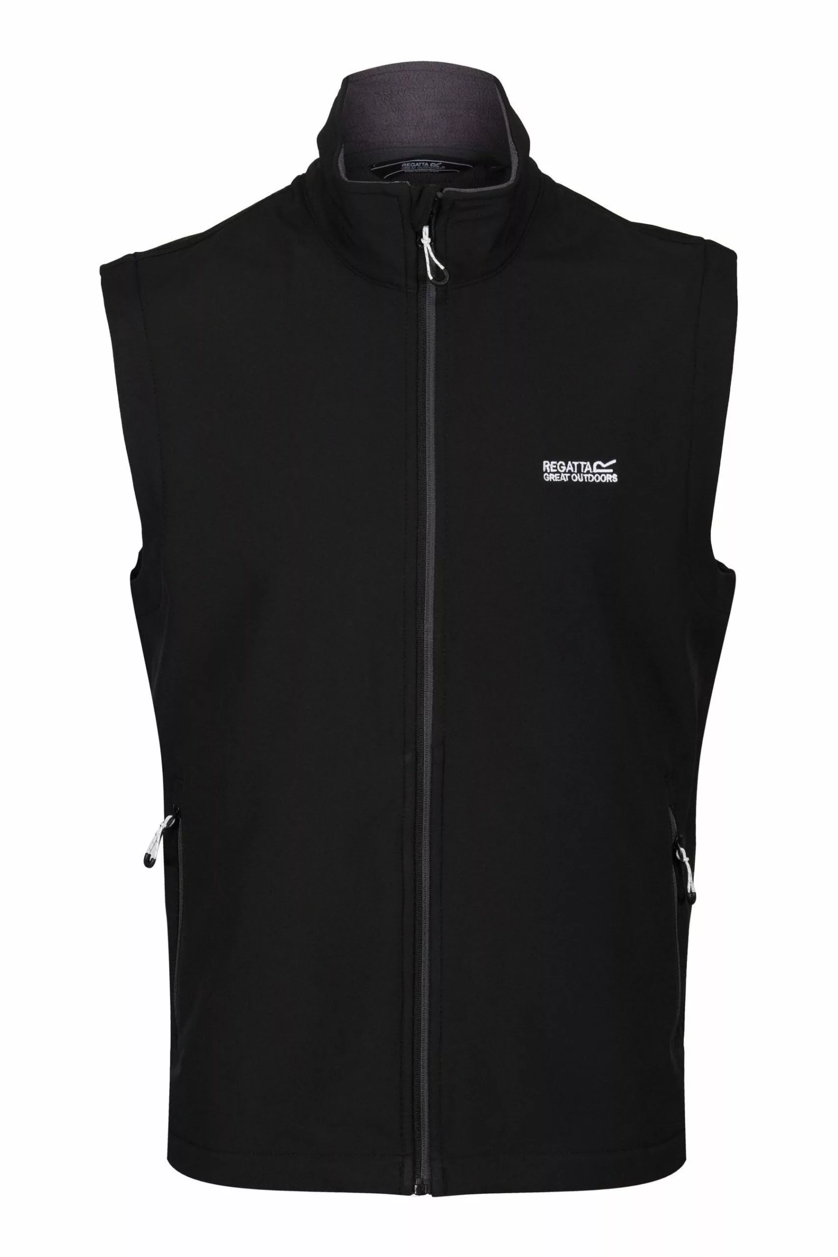 The men's Bradwell Gilet from Regatta is made of warm-backed stretch-woven Softshell fabric with a DWR (Durable Water Repellent) finish for wind and rain protection. With a relaxed fit to accommodate layers, lower zipped pockets and the Regatta Outdoors embroidery on the chest.