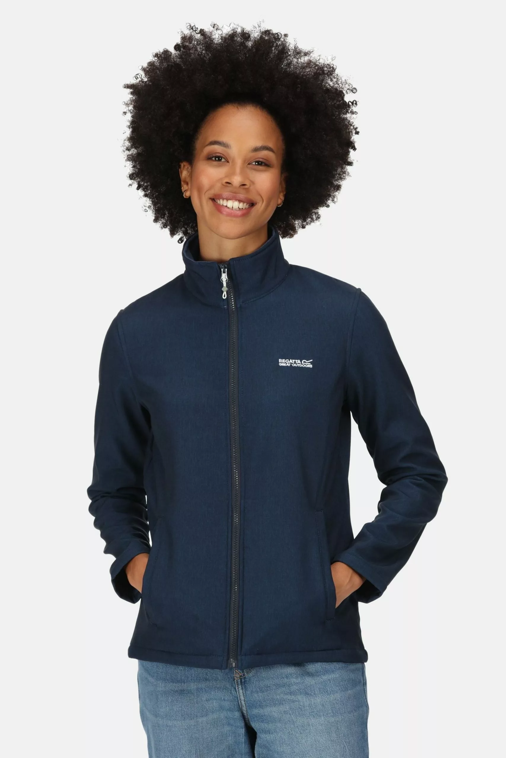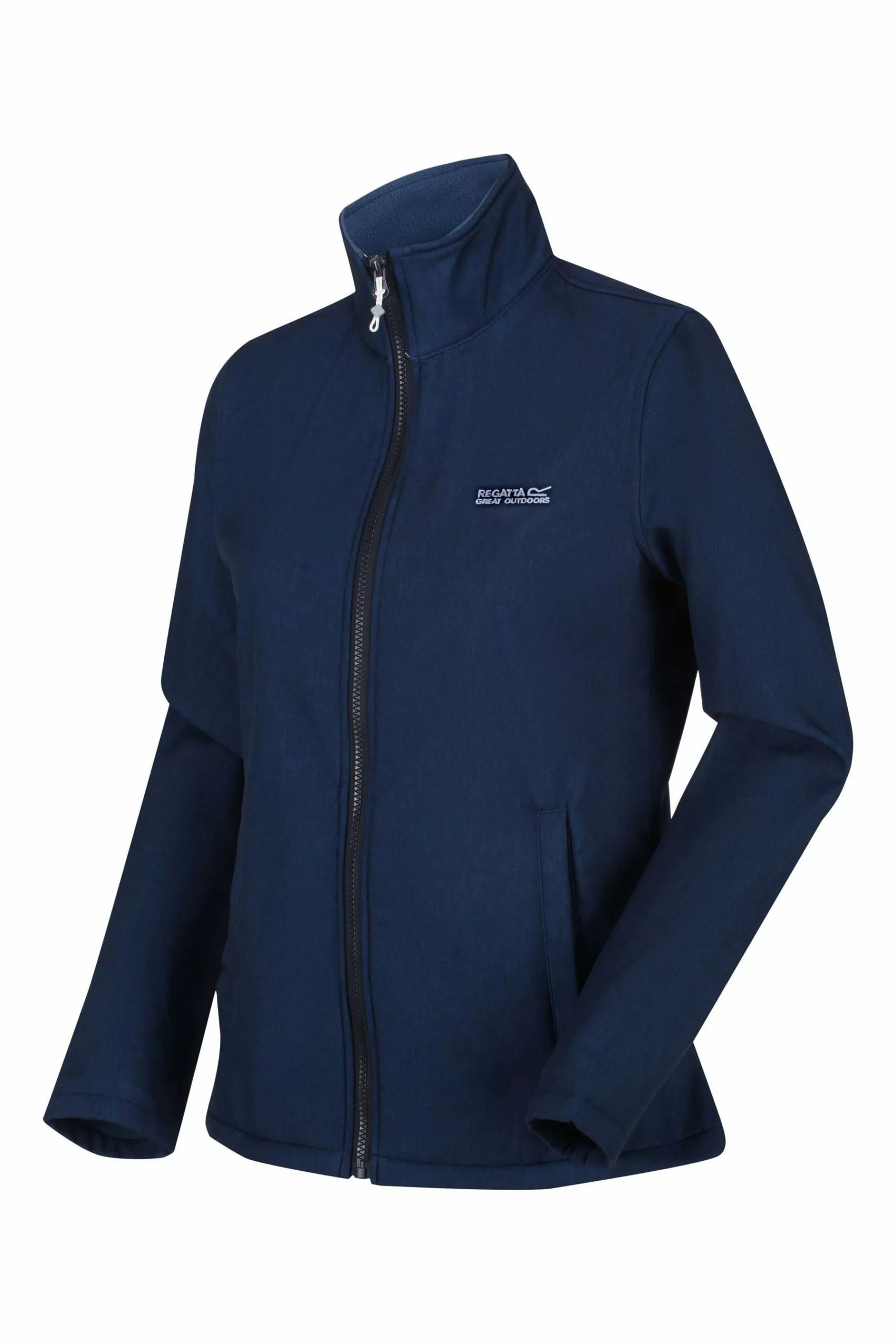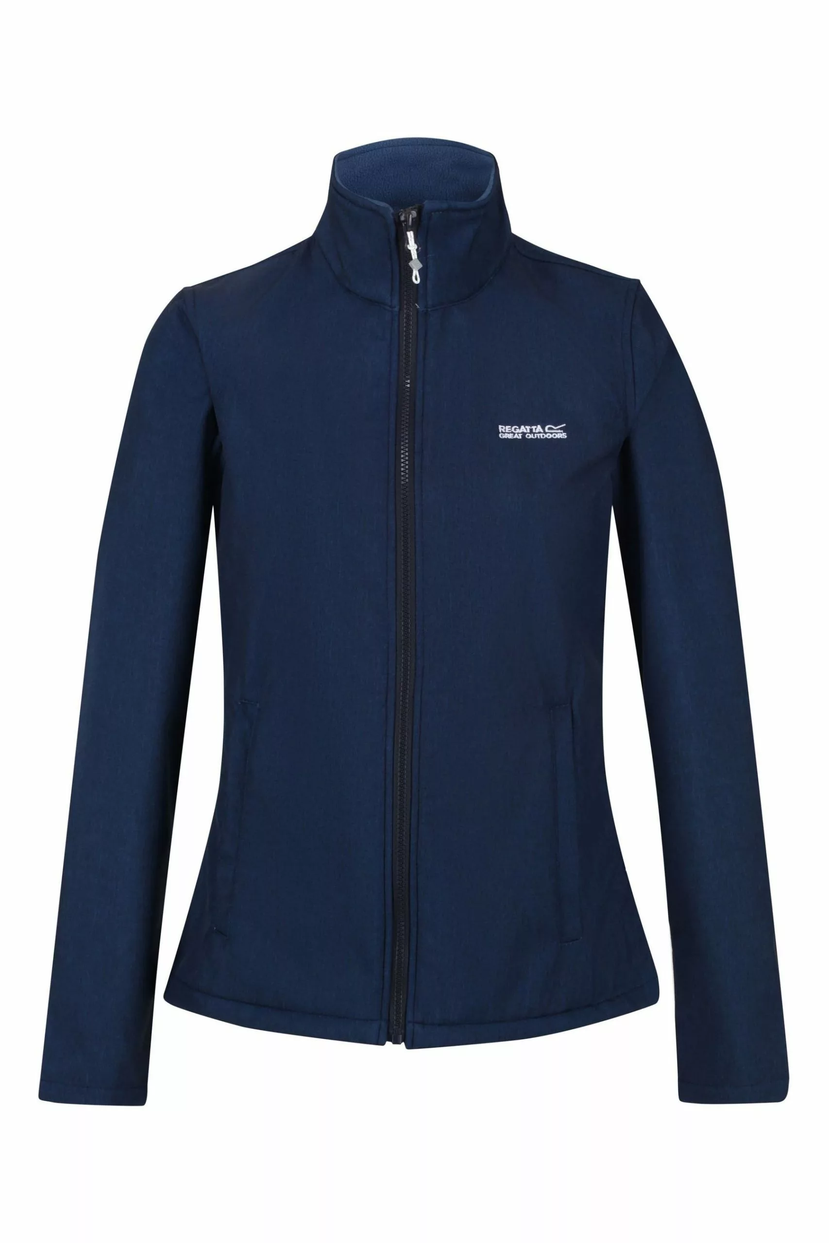 The Connie Softshell Jacket from Regatta is made of soft, warm-backed stretch fabric with a DWR (Durable Water Repellent) finish to provide wind and water resistance. With zipped side pockets and the Regatta Outdoors print on the chest.