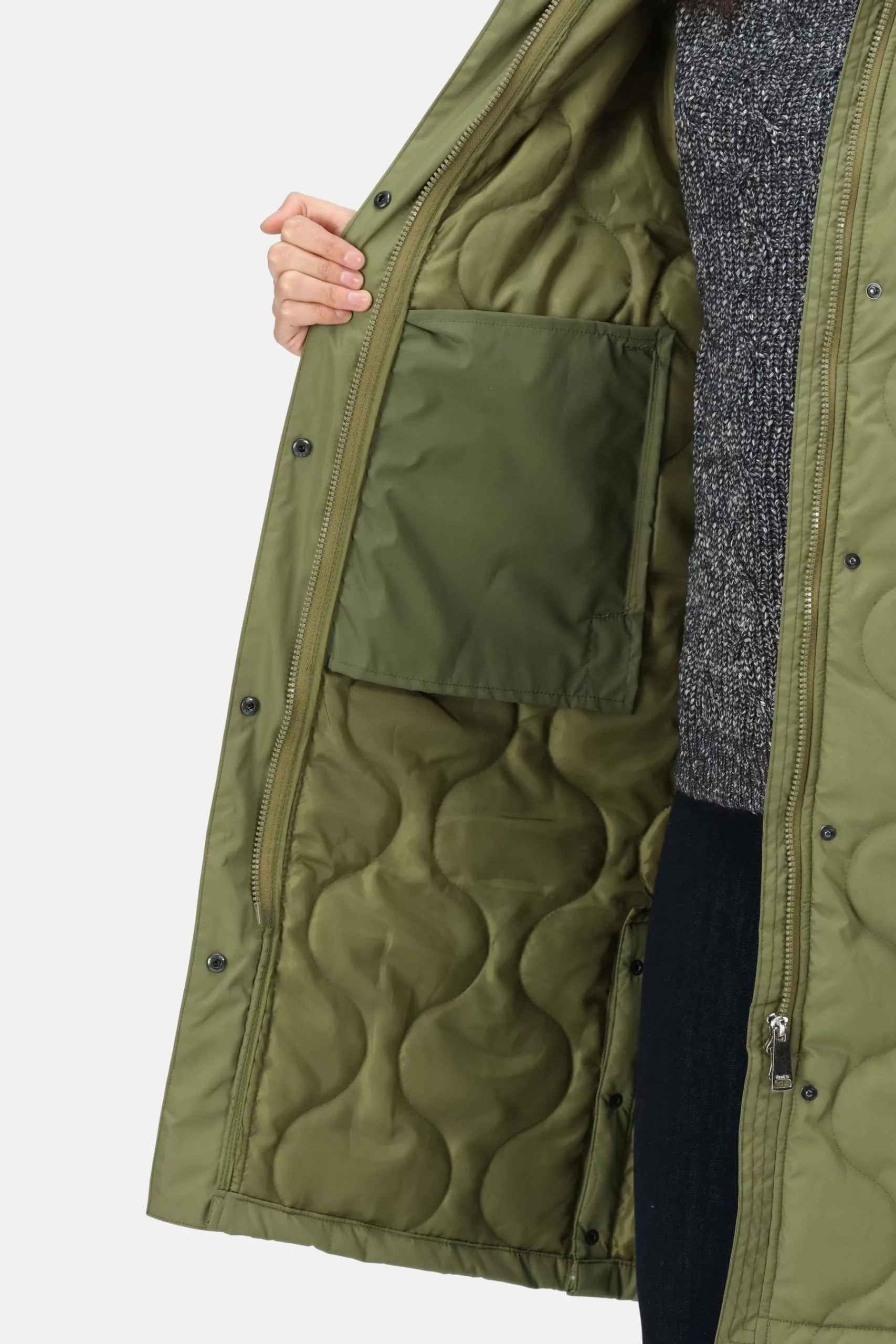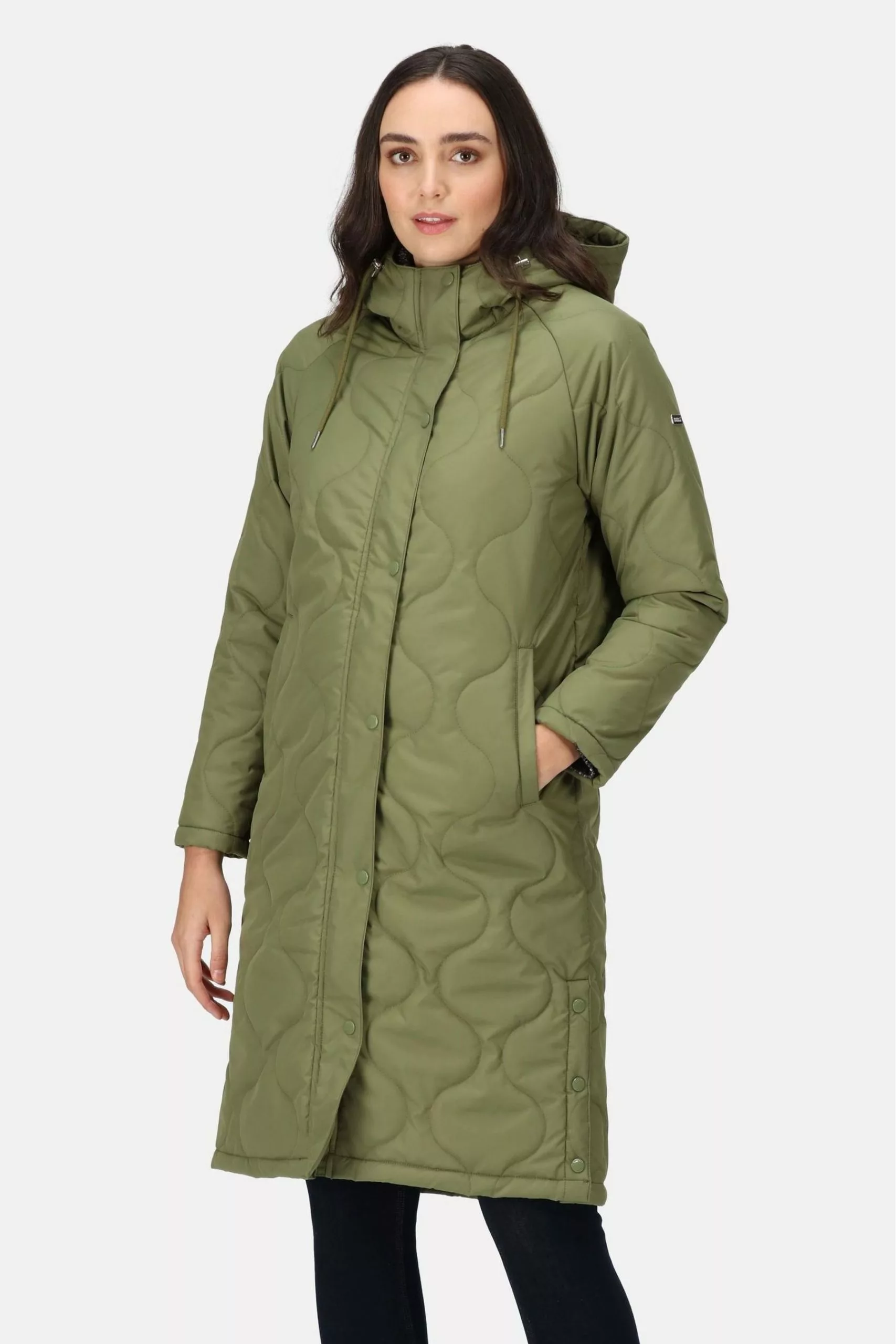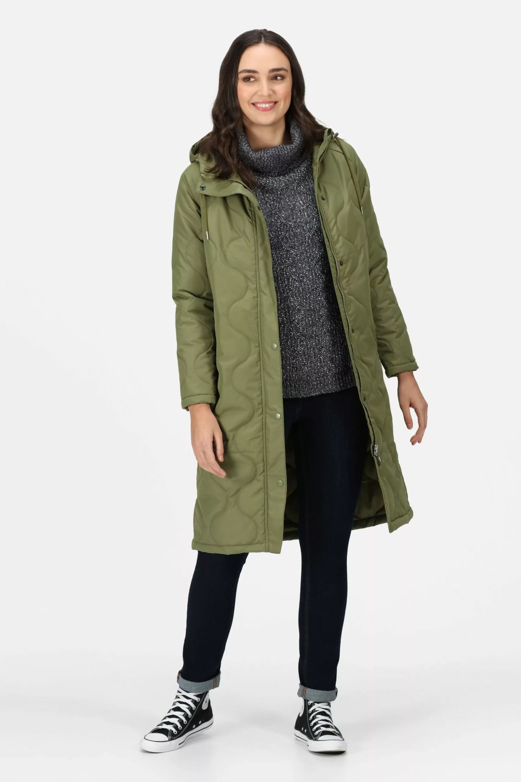 The Jovie women's winter jacket from Regatta is just the thing for everyday style. The ladies coat comes with a water-repellent finish to see off light rainfall. The Warmloft insulation keeps the cold at bay. With a padded collar and hood for extra protection. Cut in a stylish long-length design with intricate detail.