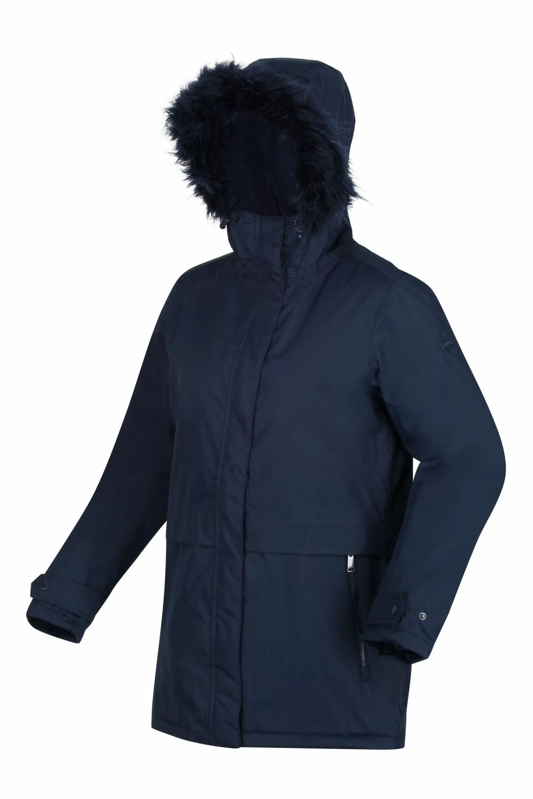 The Myla women's waterproof jacket from Regatta will complete your outdoor getup in style. The ladies' jacket is made with waterproof Hydrafort fabric to see off rain. The cold weather won't get a look in with the Thermoguard insulation. The removable faux fur trim to the hood adds style.