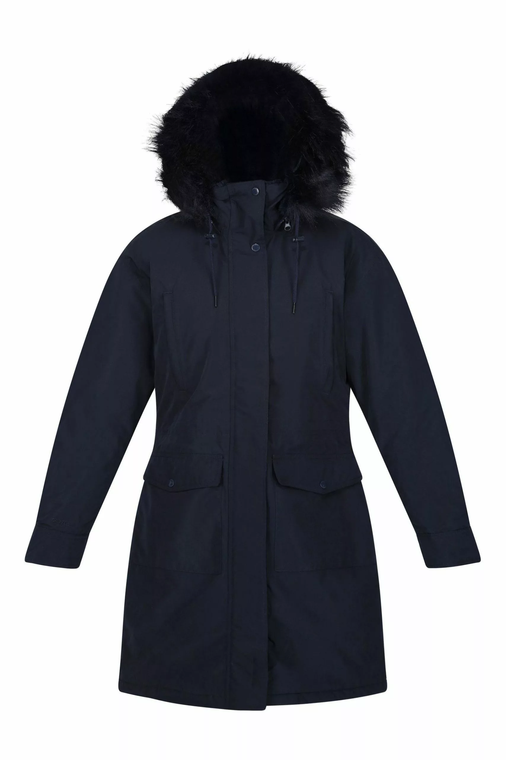 | The Shiloh women’s jacket from Regatta is the perfect stylish addition to your winter getup. The women’s winter jacket is made from waterproof and breathable Isotex 10000, protecting from rainfall and keeping you fresh. There’s Warmloft down-touch insulation to keep you toasty on your outings. The faux fur lining to the hood adds a stylish touch.
