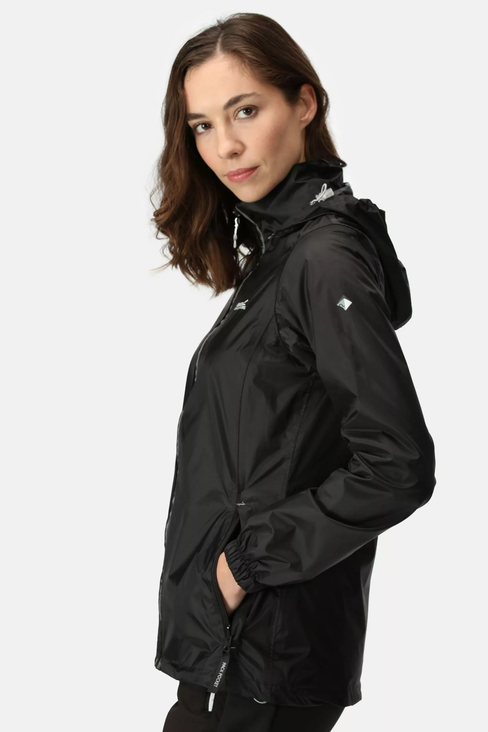 The women's Corinne packaway jacket from Regatta is made of super lightweight, waterproof/breathable Isolite 5,000 fabric. With a soft mesh lining, an adjustable hood, zipped side pockets and the Regatta Outdoors print on the chest.