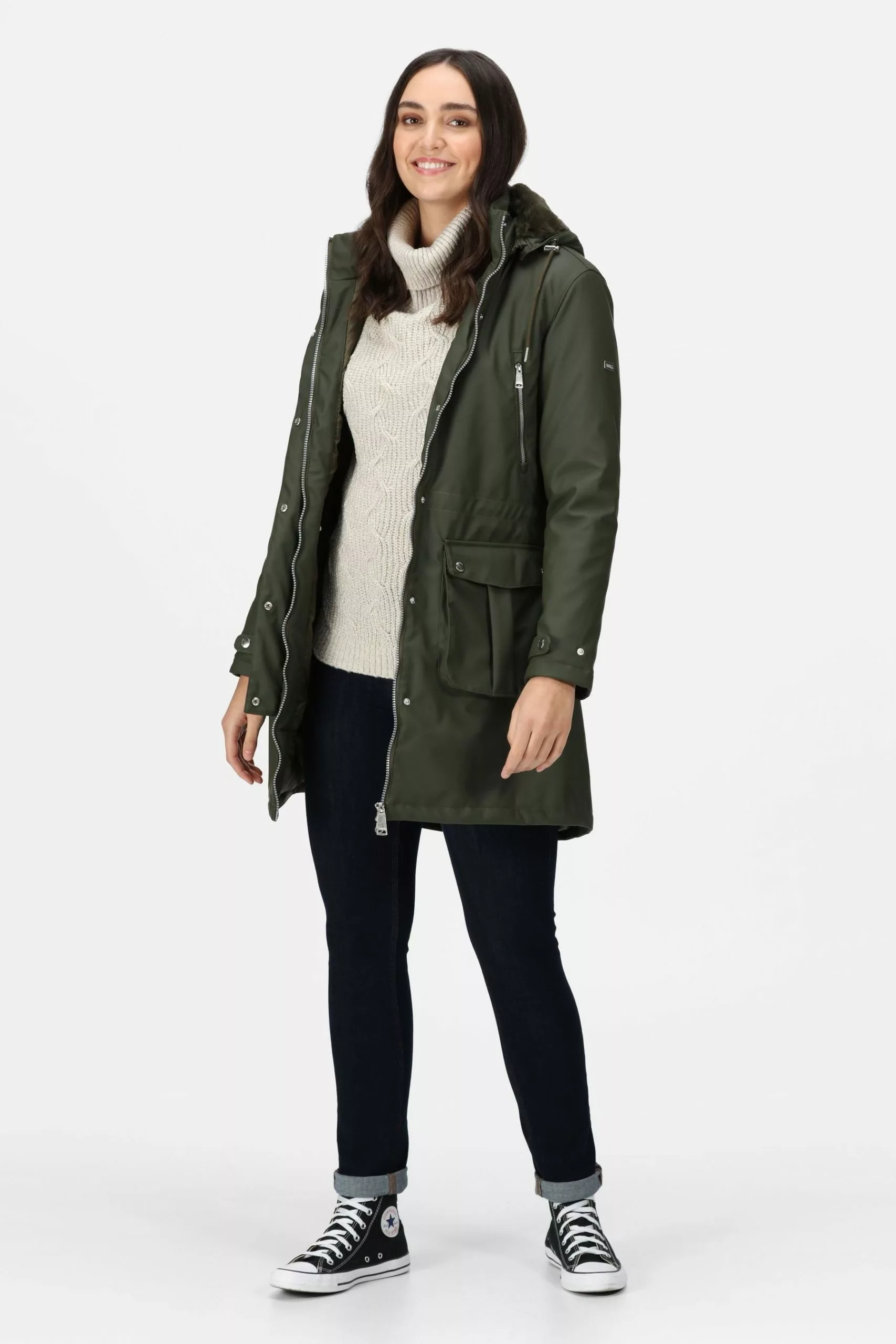 The Fabrienne women's winter jacket from Regatta is ideal for everyday wear. The ladies coat comes with a water-repellent finish to see off light rainfall. There's a faux fur trim on the inside to keep you warm. The bulk-free design makes sure nothing gets in the way.