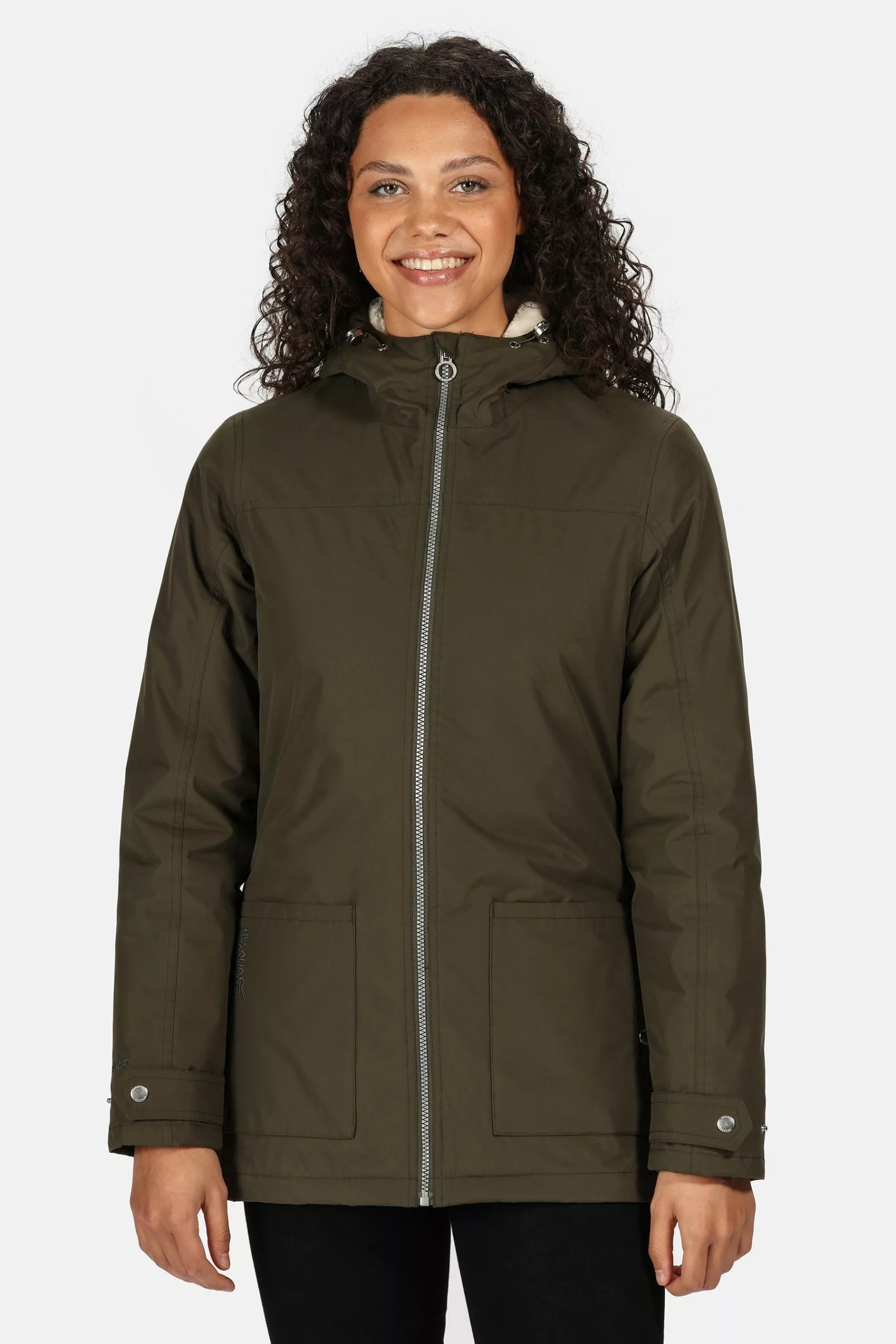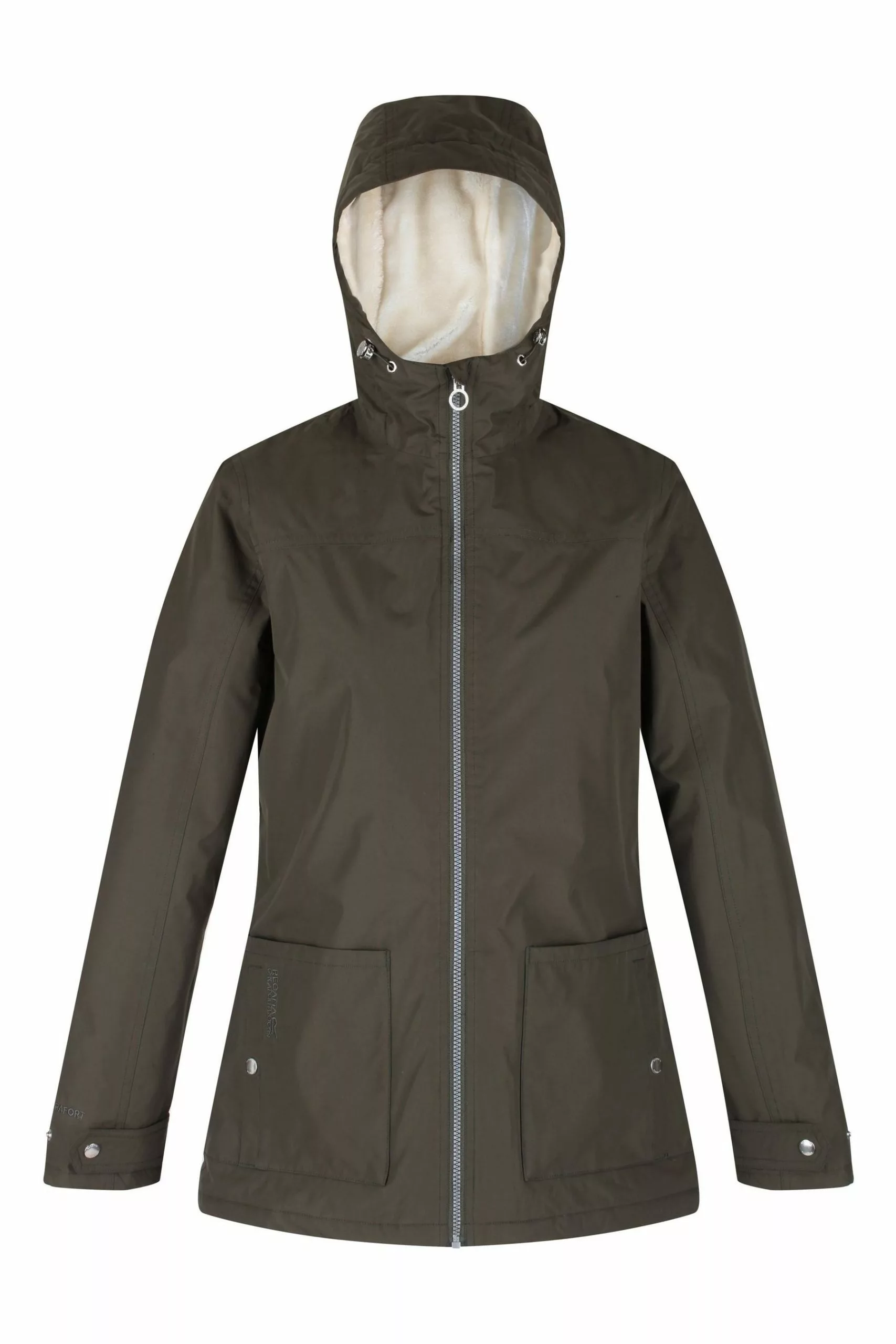 The women's Bergonia II Mac from Regatta is made of soft-touch Hydrafort fabric with a DWR (Durable Water Repellent) and sealed seams to protect in wet or snowy conditions.