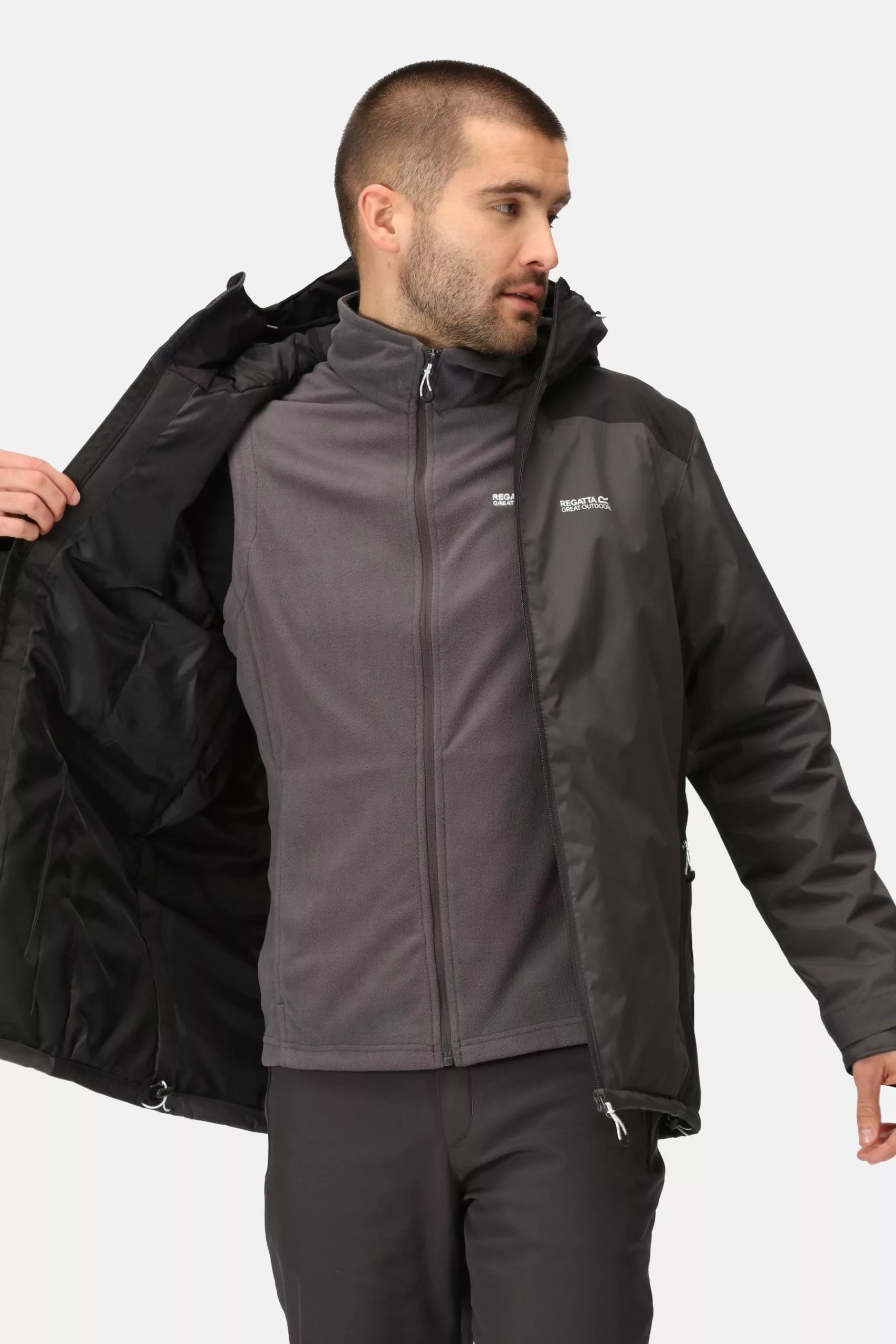 The men's Thornridge Jacket from Regatta is made of waterproof Hydrafort fabric lightly wadded with warming Thermoguard insulation.