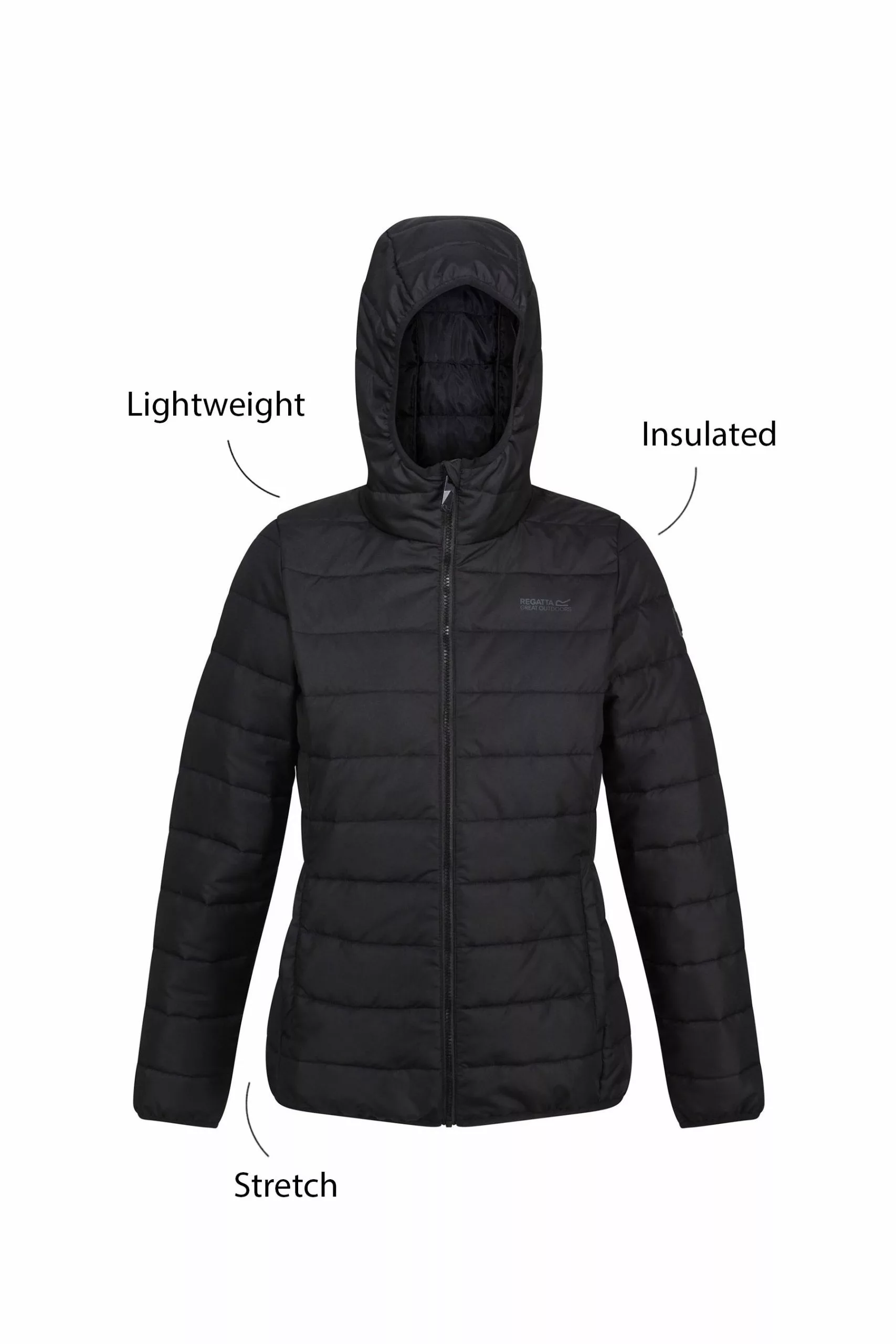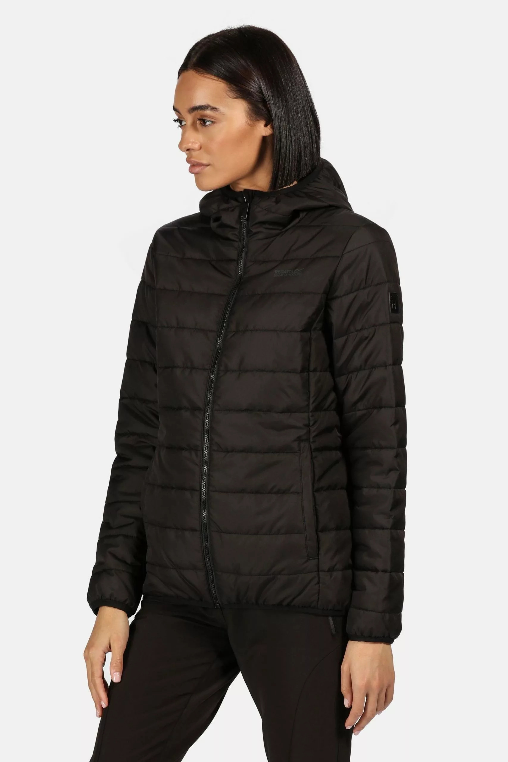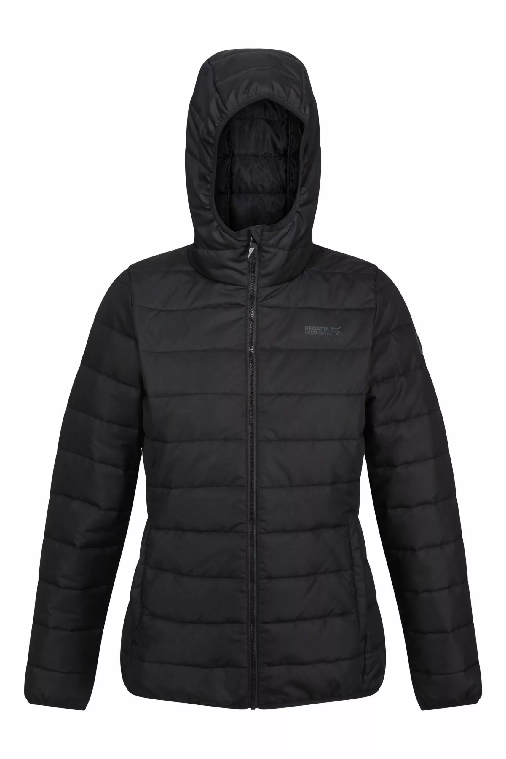 The women's Helfa Jacket from Regatta is made of lightweight polyester with a DWR (Durable Water Repellent) finish and down-touch Warmloft fill.