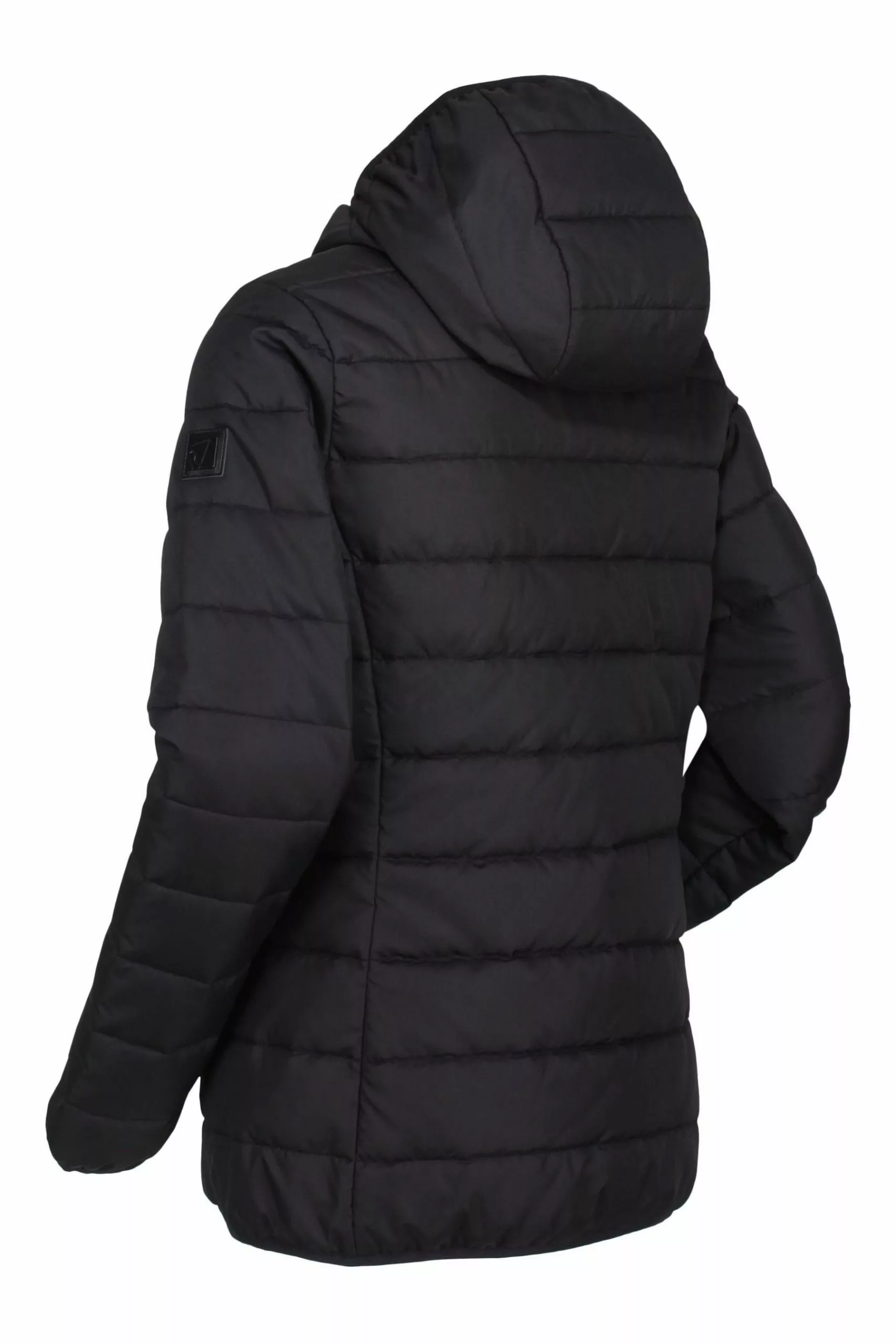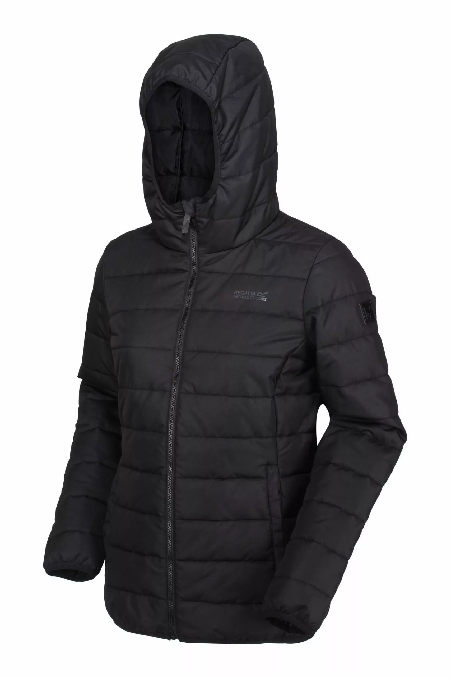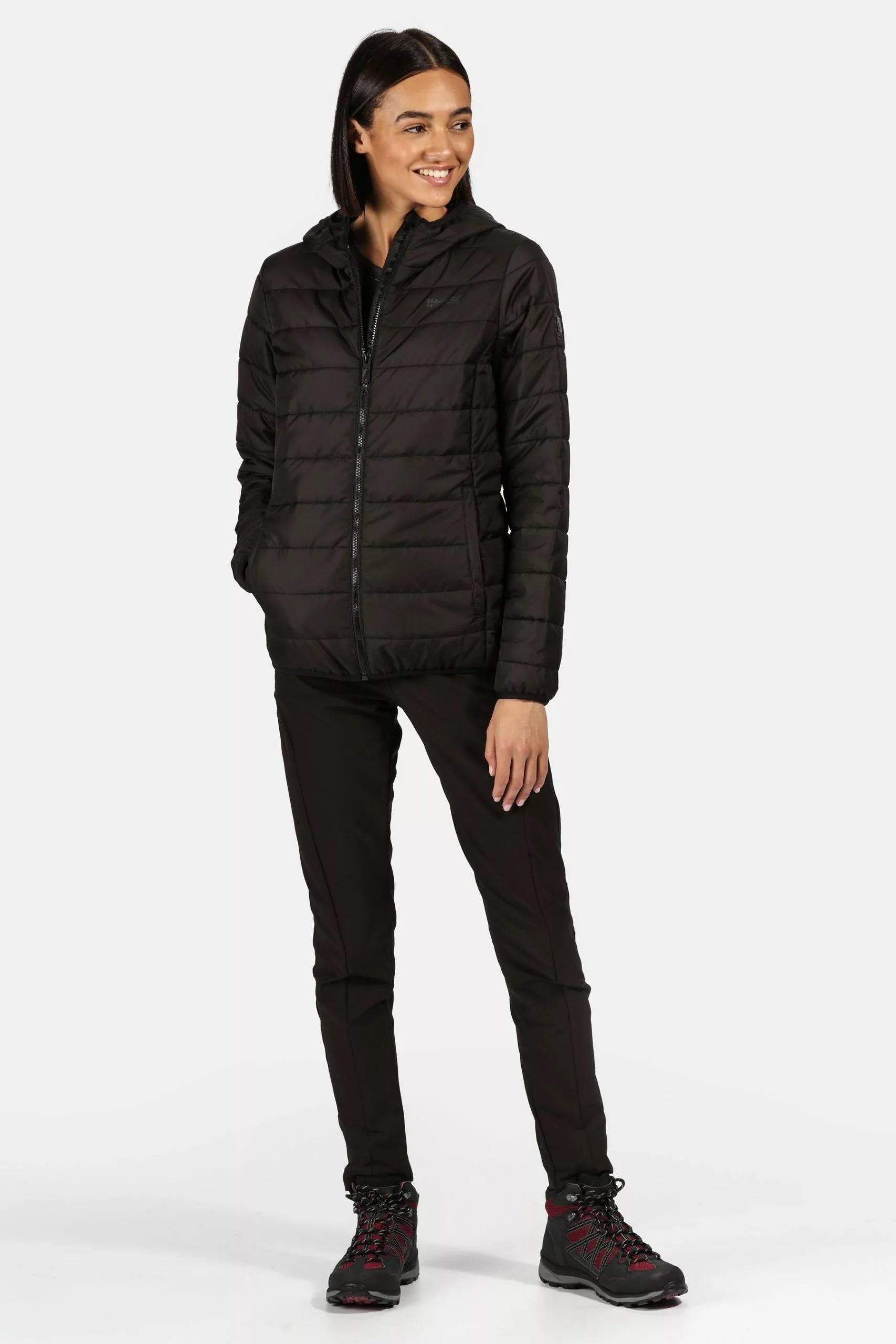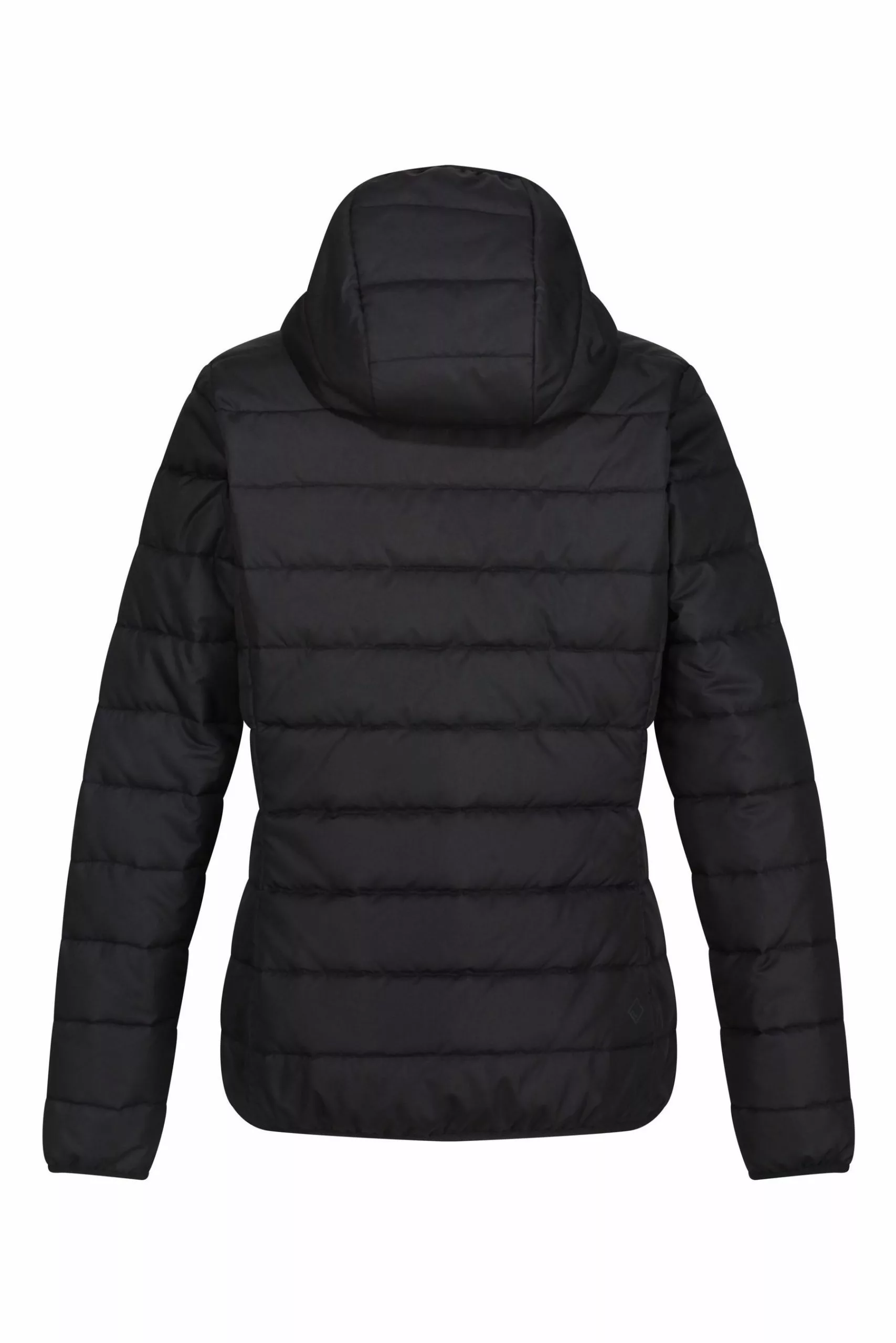 The women's Helfa Jacket from Regatta is made of lightweight polyester with a DWR (Durable Water Repellent) finish and down-touch Warmloft fill.