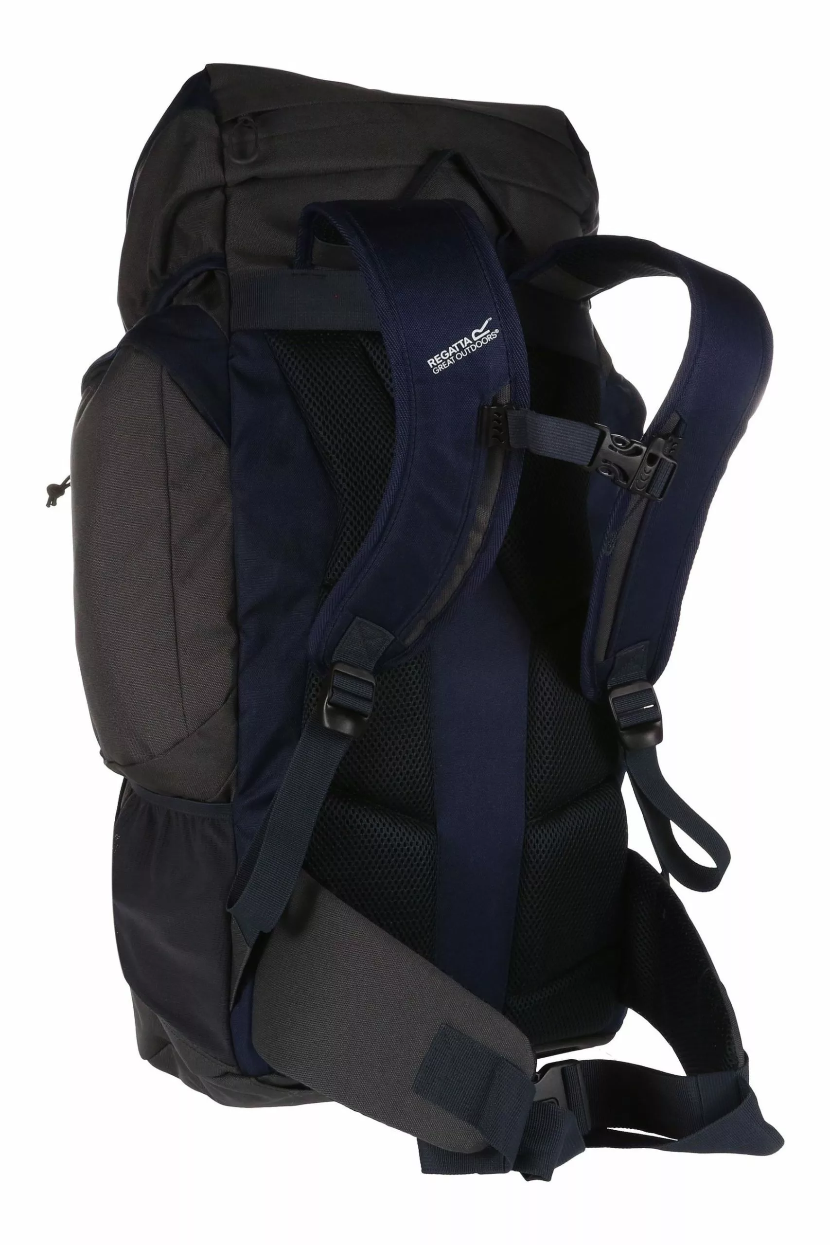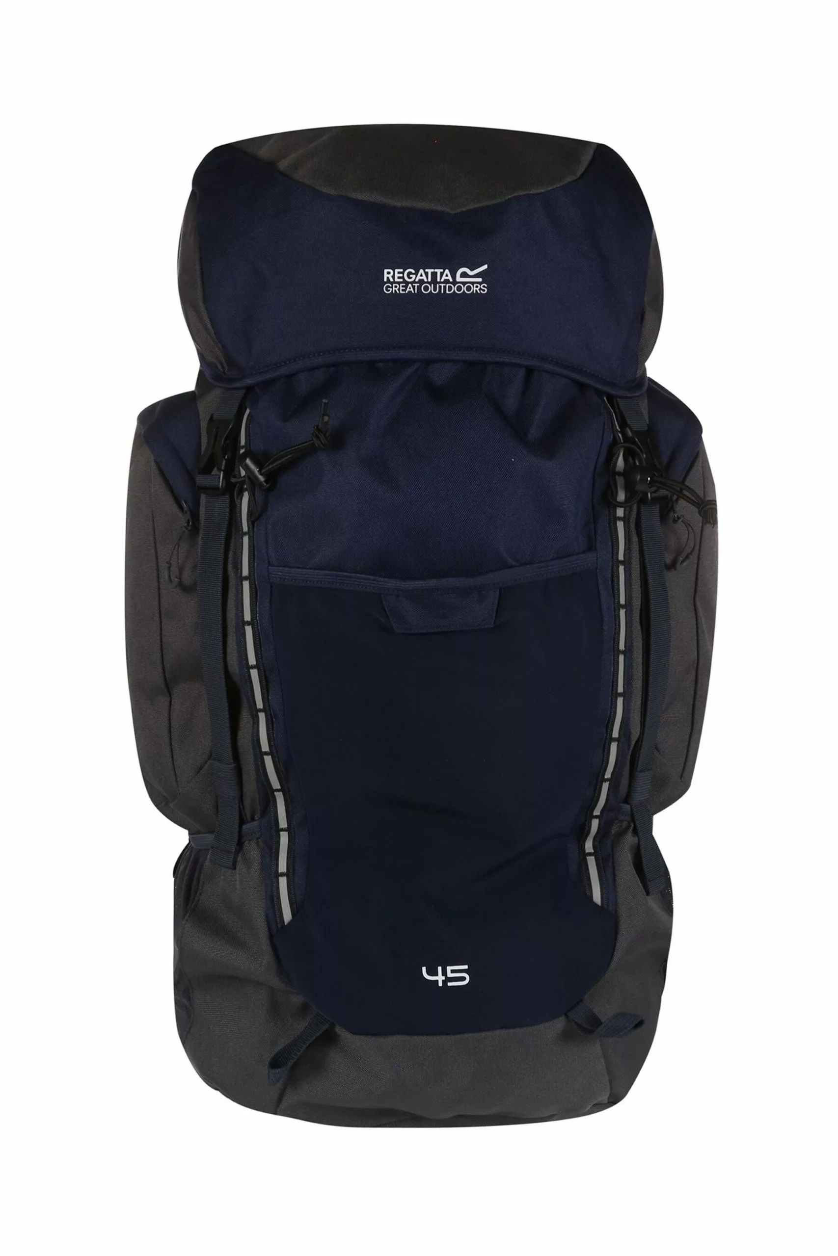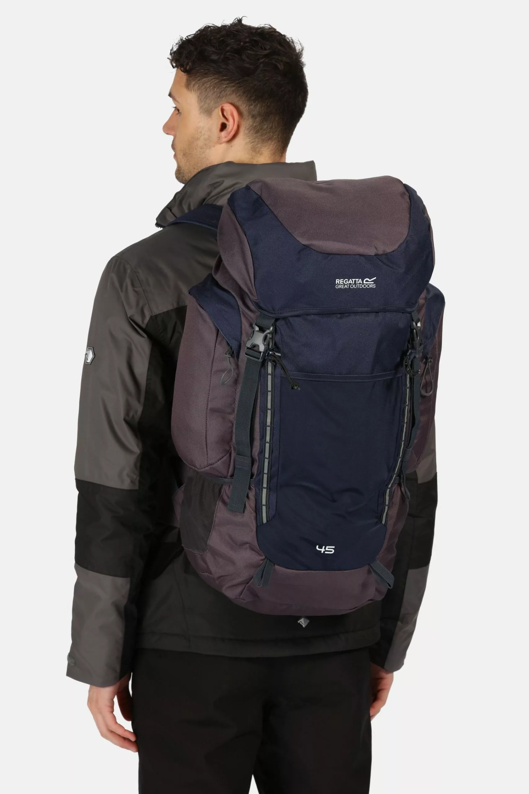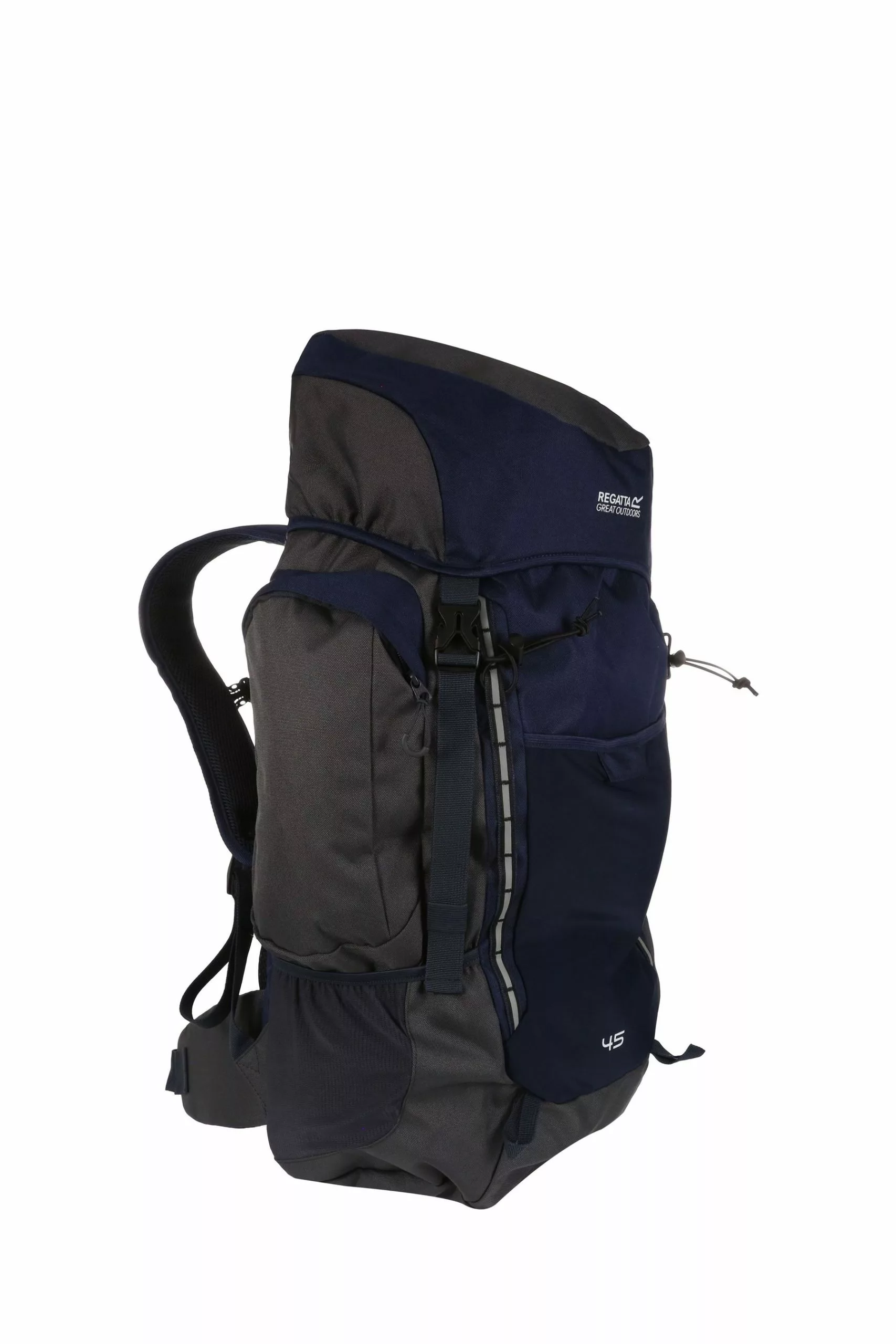 The roomy Regatta Highton rucksack with up to 45-litre capacity with a metal frame for structural support. A versatile and durable pack for expeditions and overnight camping trips. Made from tough-wearing ripstop fabric with a mesh back construction for cooling airflow. The bag hugs the body with two shoulder straps, an adjustable chest harness and cushioned hip belt. On the side, you’ll find two zipped side pockets, mesh water bottle pockets and bungee walking pole holders. The detachable rain cover provides reliable protection.