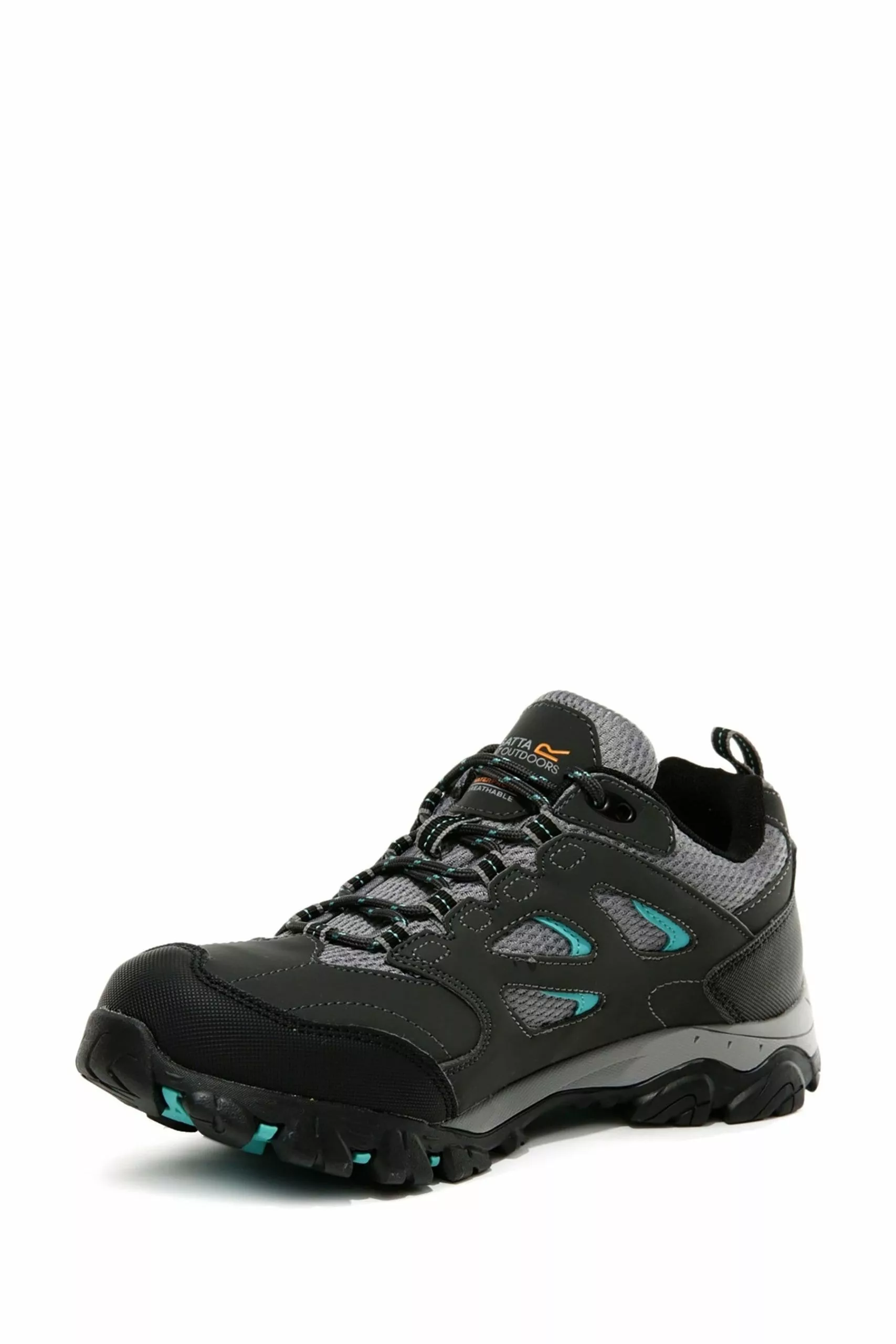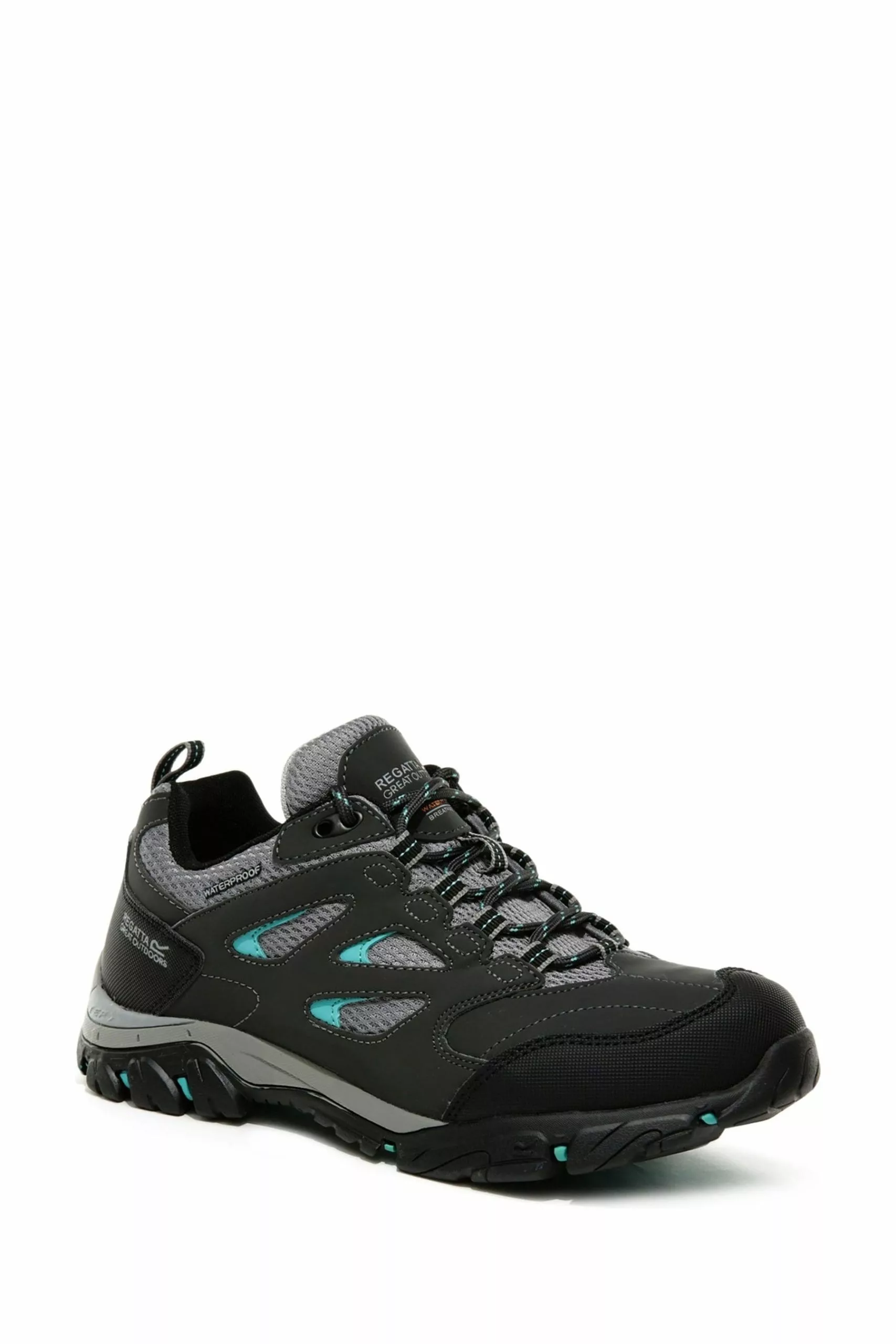 The Lady Holcombe IEP Low Walking Shoe from Regatta is made with PU suede and breathable mesh with a water-repellent Hydropel finish and a waterproof/breathable Isotex membrane. The weight-reducing IEP (Internal EVA Pocket) sole provides lasting comfort and superb grip. Weighs 430 grams.