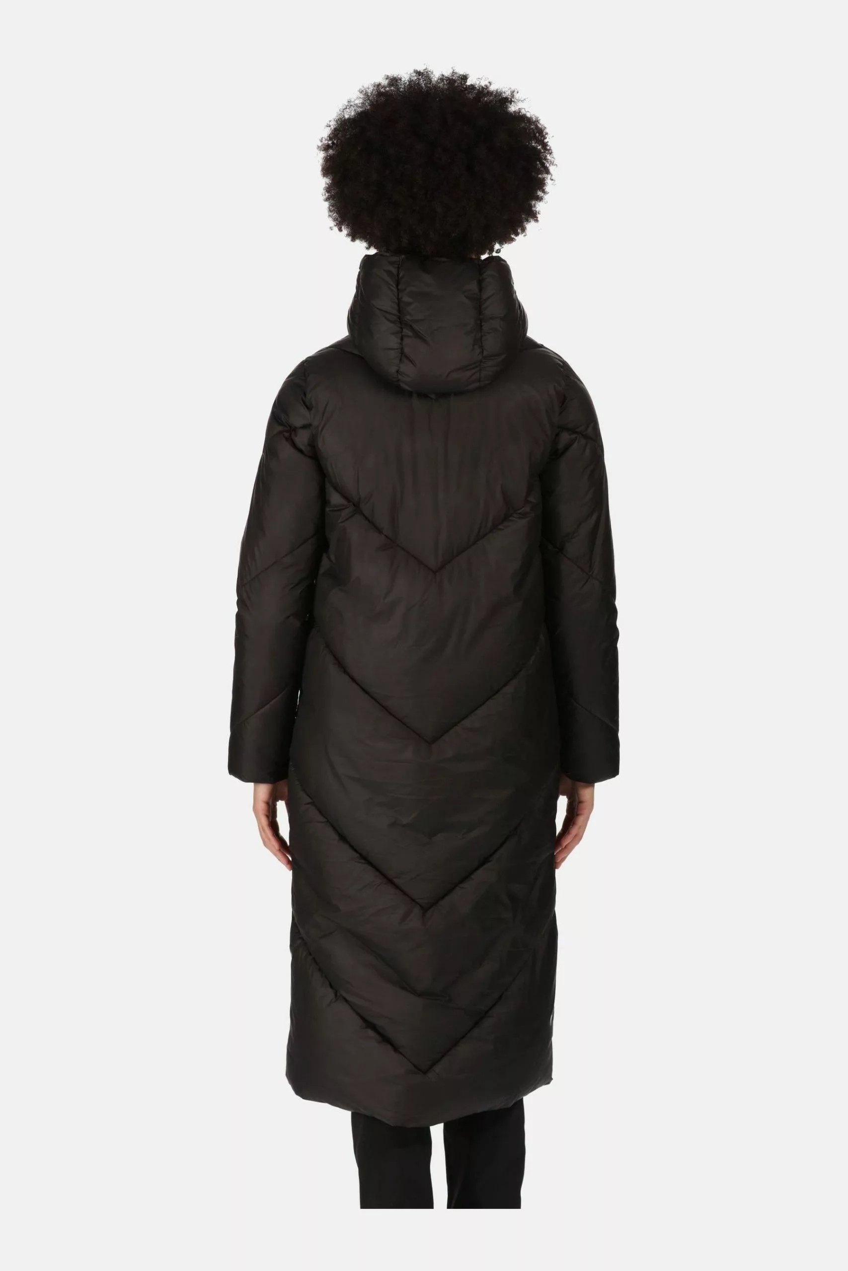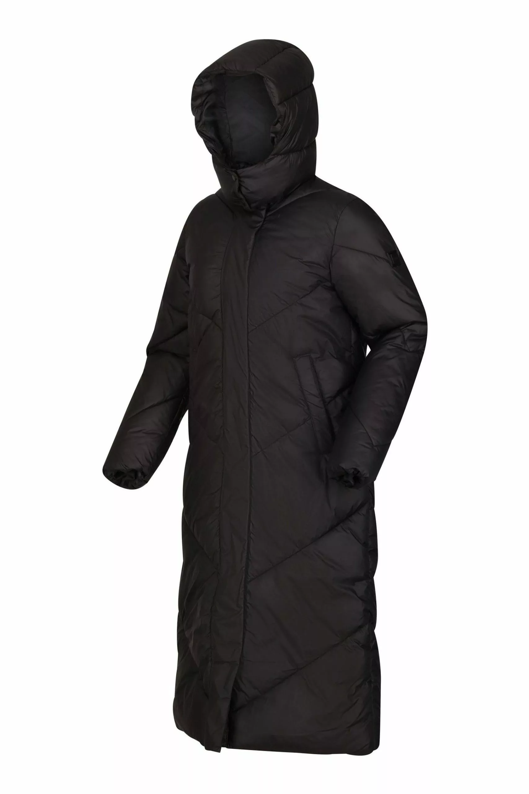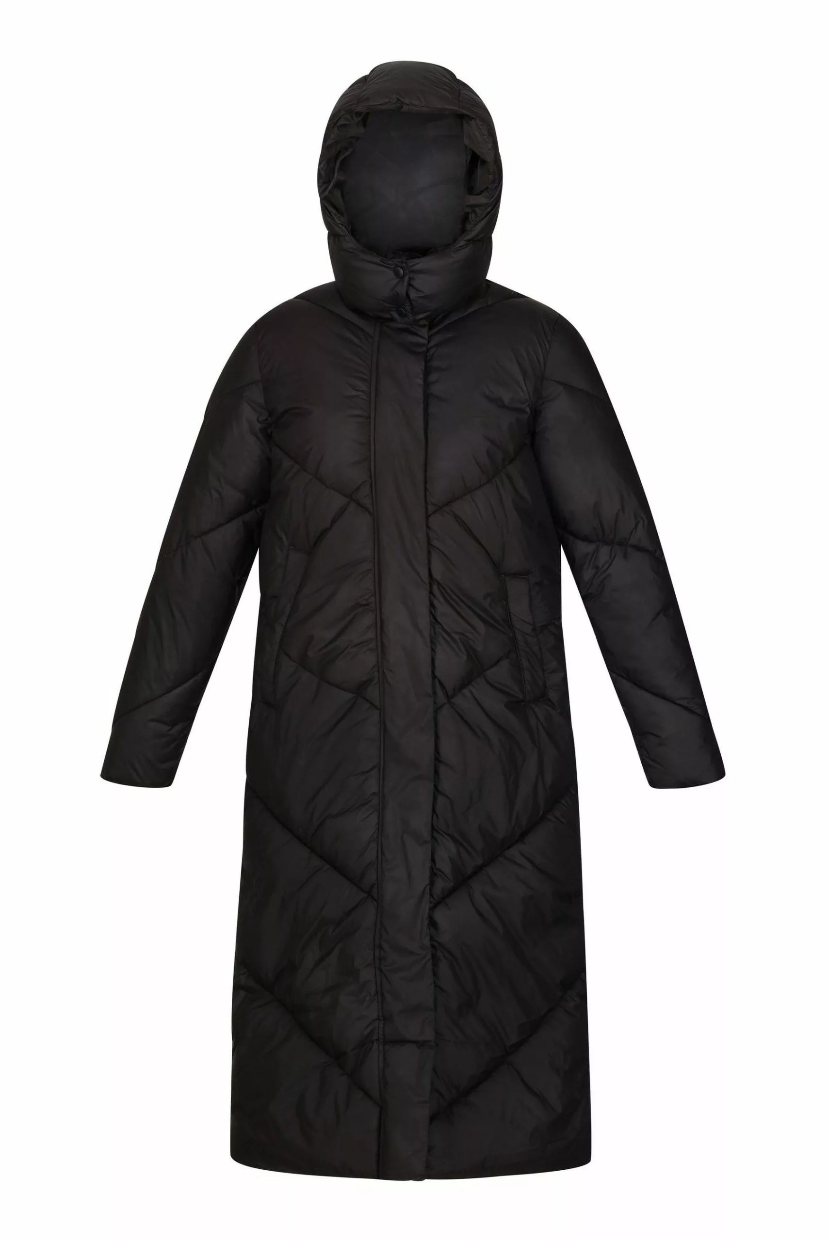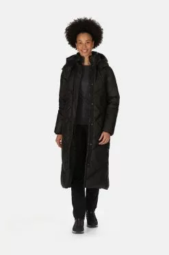 The Longley women’s padded jacket from Regatta, will keep you dry and cosy with its water repellent, maxi length style. The women’s water repellent padded jacket features a recycled feather free down insulation. The recycled fill is made from approximately 40 plastic bottles (500ml size). A grown on hood and storm cuffs will keep the cold chill out, in this easy to wear outdoor jacket.