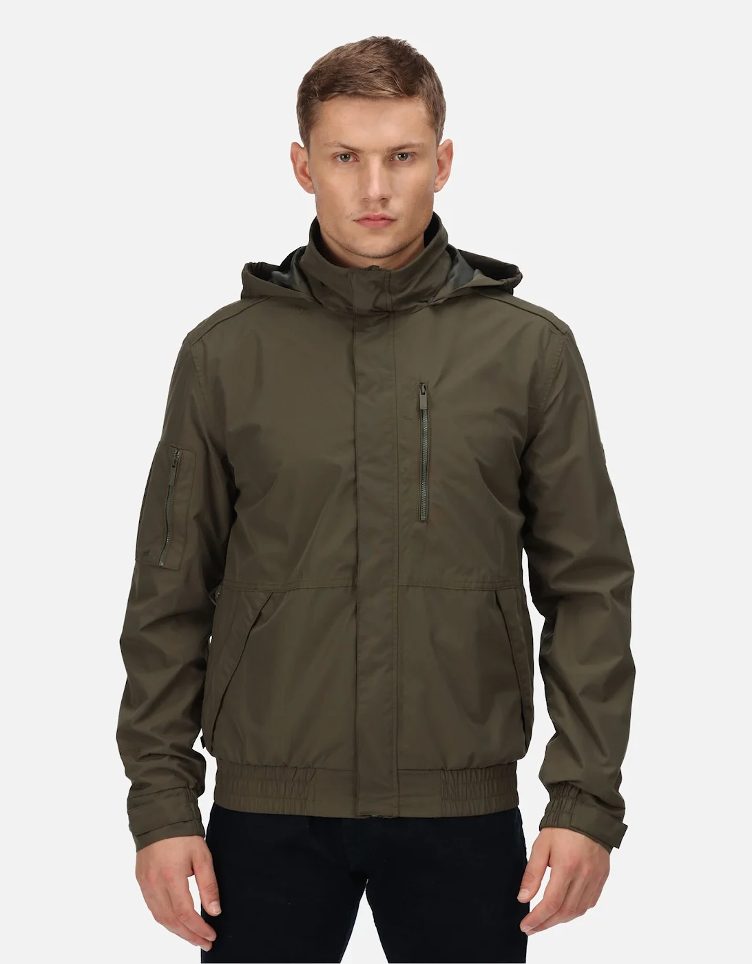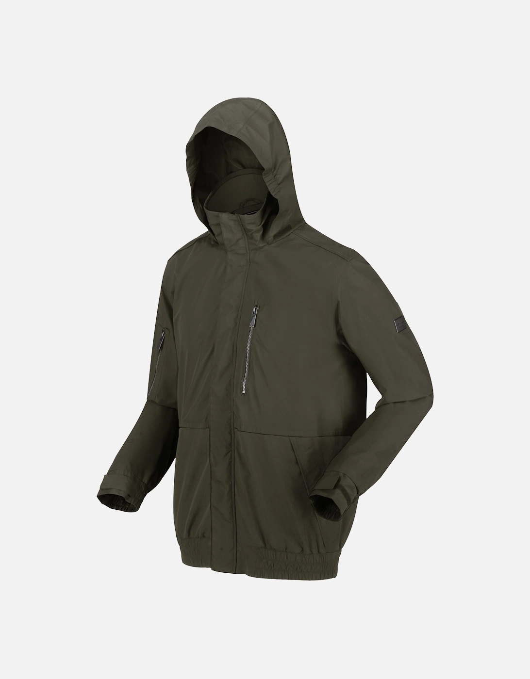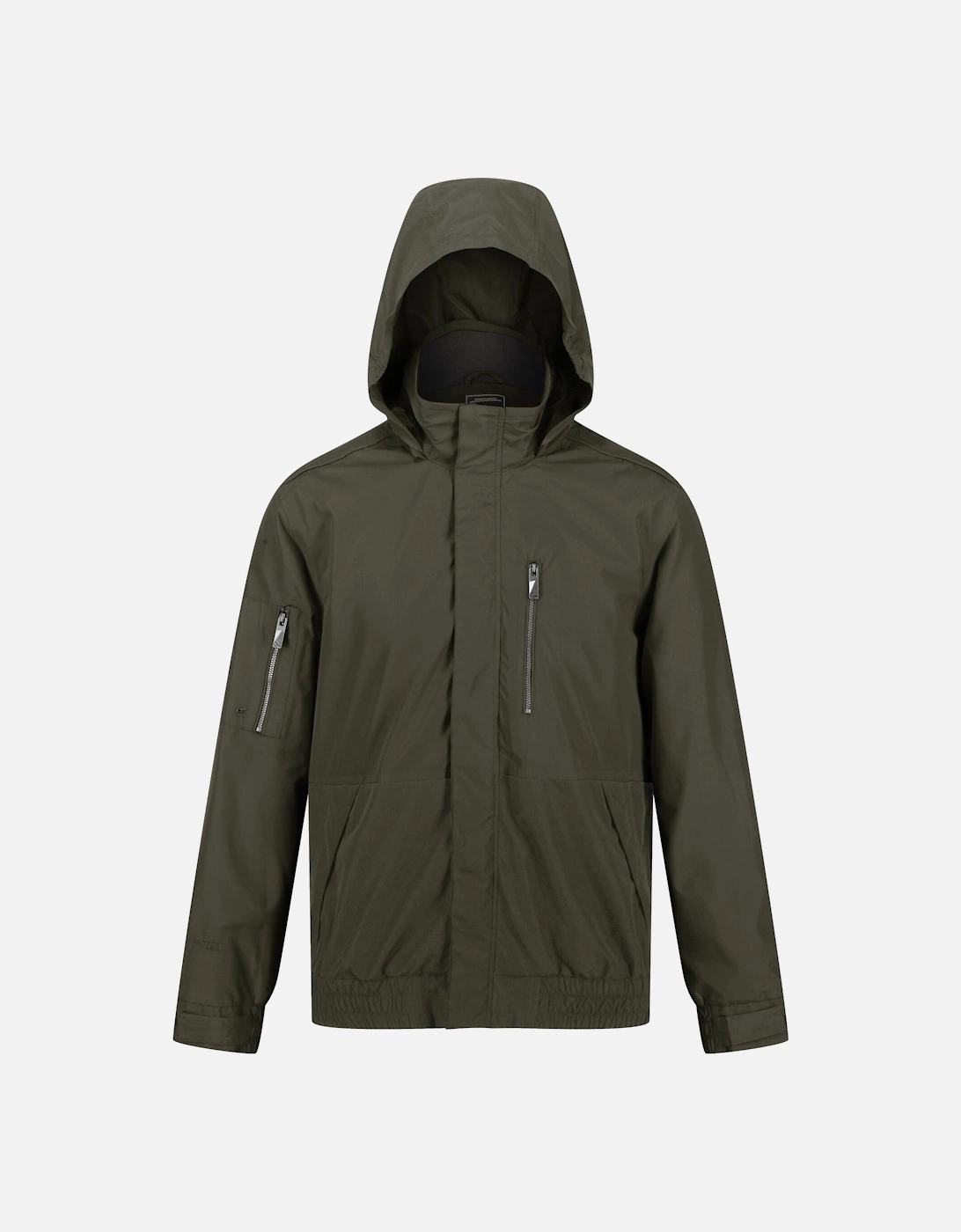 Material: 100% Polyester. Lining: Mesh, Taffeta. Fabric: Stretch, Yarn. Design: Badge, Plain. Fabric Technology: Breathable, DWR Finish, Isotex 5000, Waterproof. Taped Seams. Cuff: Adjustable Wrist Strap. Neckline: Hooded. Sleeve-Type: Long-Sleeved. Hood Features: Adjustable, Concealed. Pockets: 1 Chest Pocket, 1 Sleeve Pocket, 2 Side Pockets, Zip. Fastening: Full Zip, Stormflap. Waterproof Rating: 5000mm. Hem: Elasticated.