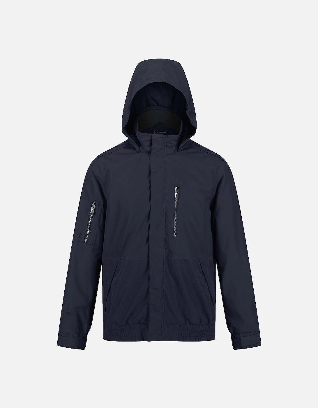 Waterproof and breathable peached fabric. Isotex stretch 5000. Durable water repellent finish. Taped seams. Polyester mesh lining with polyester taffeta lined sleeves. Internal security pocket. Lightweight concealed hood with adjusters. Ribbed inner collar. Part elasticated cuffs with adjusters. 1 zipped chest pocket. 1 zipped sleeve pocket. 2 zipped lower pockets. Elasticated hem., Material: 100% Polyester.