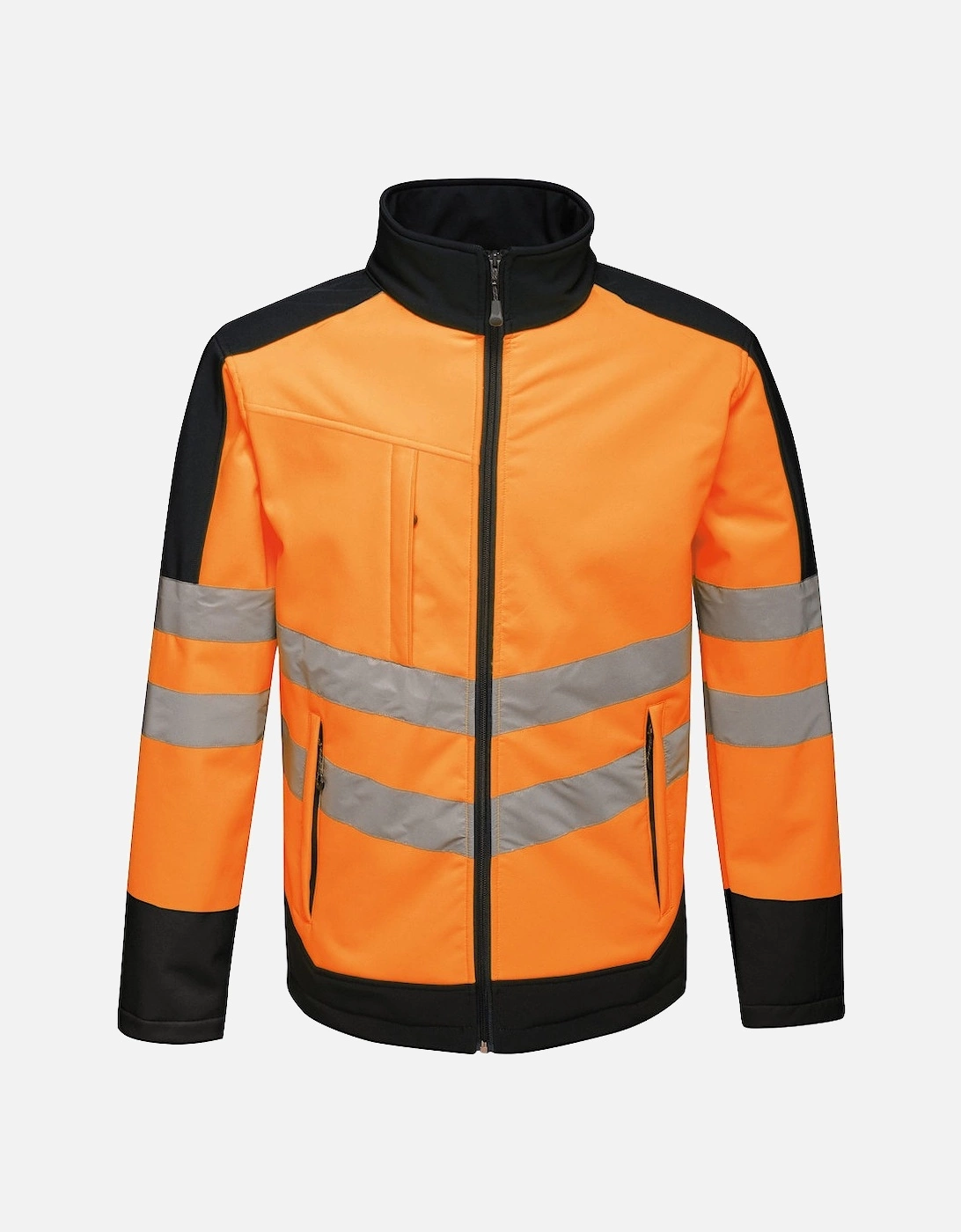 Warm backed woven Softshell XPT and breathable 3 layer membrane fabric. Special Features. EN ISO 20471:2013 +A1:2016 Class 2. 2 zipped lower pockets. Adjustable shockcord hem. Full length zip with inner zip and chin guard. 1 chest pocket. Orange colour-way also conforms to RIS-3279/TOM. ID Reflection – Our angled chevrons allow people to know which way you are facing towards or away from them at a quick glance, increasing safety in low light. This product has no external logo branding., Material: Polyester 100%.
