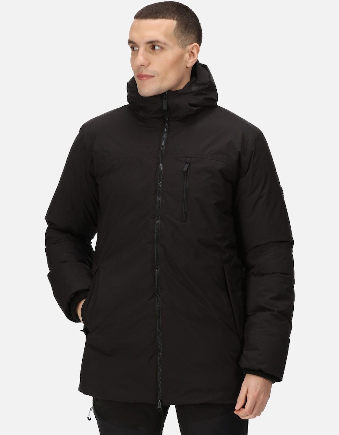 Waterproof and breathable Isotex 8000 recycled 100% polyester stretch fabric. Breathability rating 8,000g/m2/24 hours. Durable water repellent finish. Taped seams. Quilted polyamide lining. Feather Free – premium recycled synthetic down insulation. Recycled fabric and fill made from approximately 47 plastic bottles (500ml size). Heavyweight fill. Expandable hood with concealed adjusters. 2 zipped chest pockets. 2 dual entry lower pockets – top entry with flap and snap closure and side handwarmer pocket. Inner zipped security pocket. Inner ribbed cuff. Adjustable shockcord hem., Material: 100% Polyester.