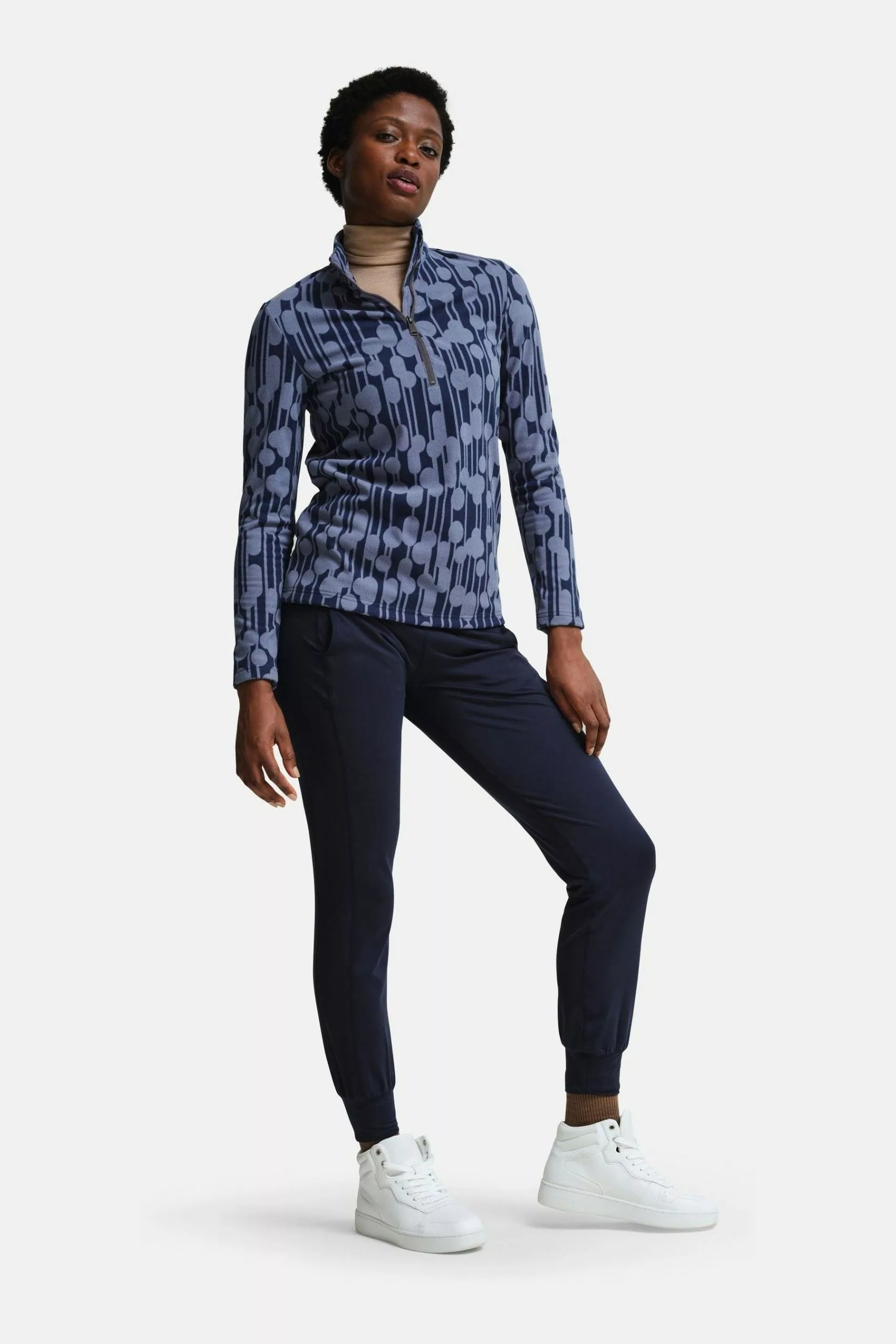 The women's Orla Zip Neck Fleece from Regatta is a classic layering piece for winter. The women's casual zip neck fleece is soft and cosy and made from recycled plastic bottles. In an all-over bold print, pop this style over T-shirts and undercoats for warmth on cooler days.