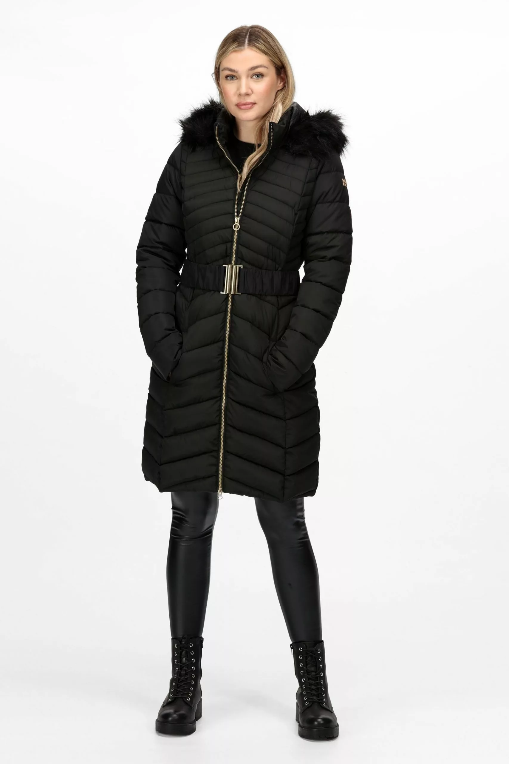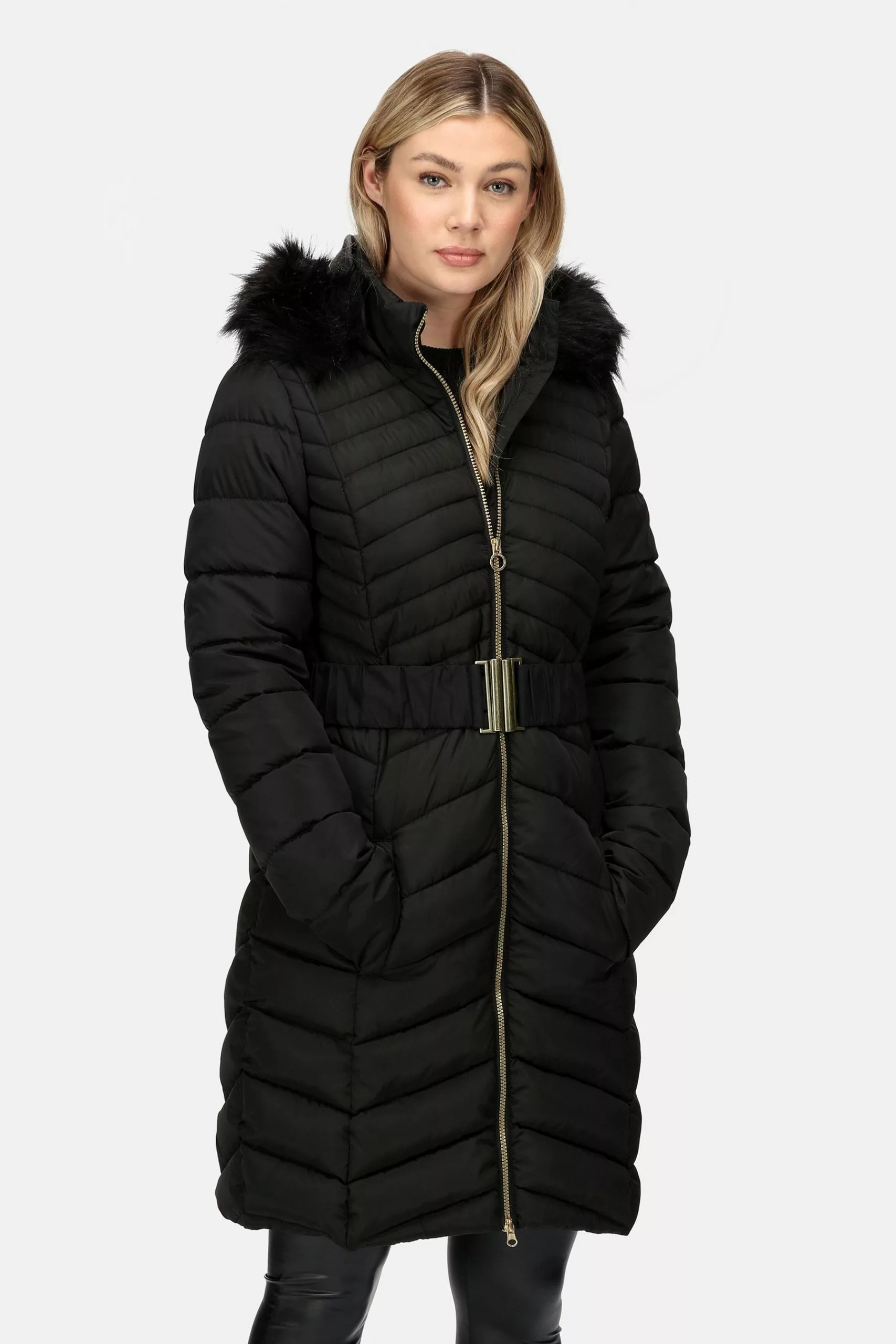 Protect yourself from the cold in style, with this on trend, longline jacket from Regatta. With a durable water repellent finish and faux fur trimmed hood, this design is fitted with a waist belt for added shape. Wear over any outfit to tick every box this winter.