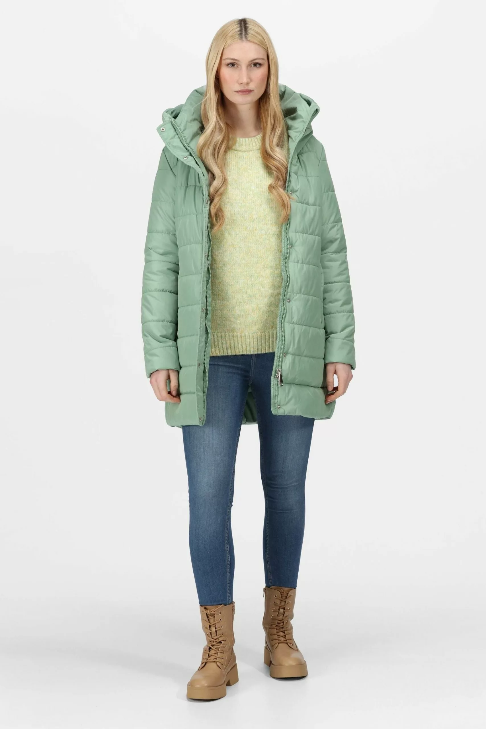 | The Pamelina women’s winter jacket from Regatta is just the thing for everyday style. The ladies' coat comes with a high-shine fabric to keep you on trend and a water-repellent finish to see off light rainfall. The Warmloft insulation keeps the cold at bay. With a padded collar and hood for extra protection. |