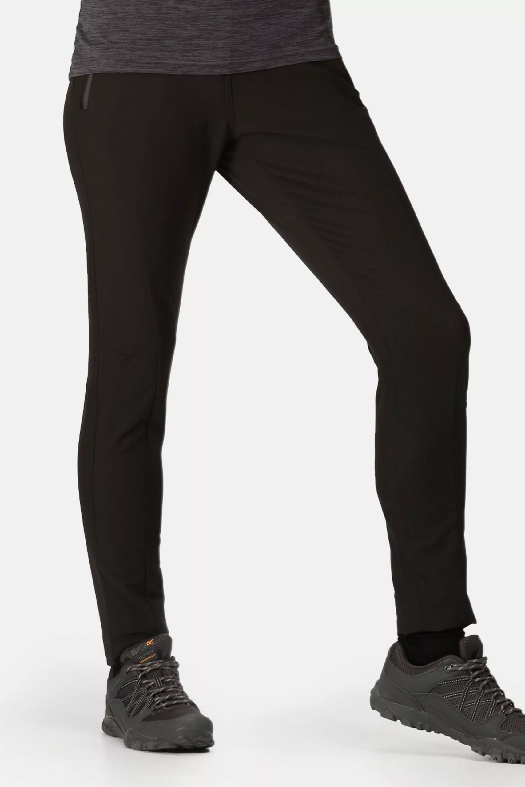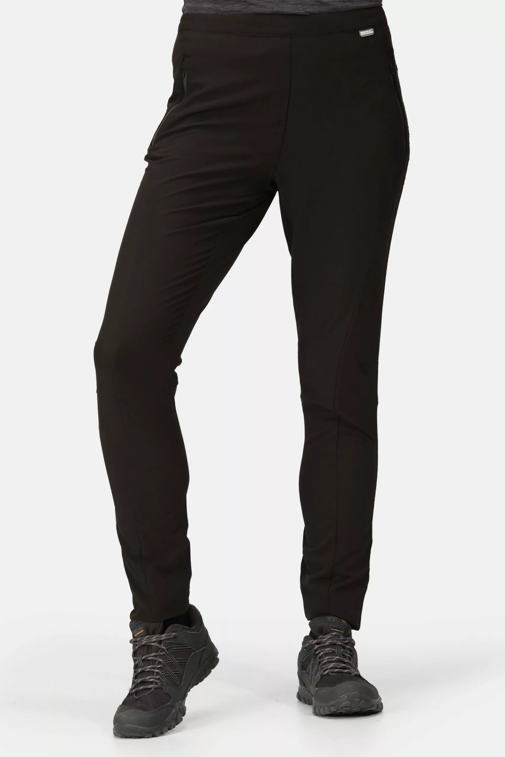 The women's Pentre Stretch Technical Trousers from Regatta are from durable, quick-drying Isoflex fabric with a DWR (Durable Water Repellent) finish. The form-fitting pair is cut with a slim/straight-leg that tapers towards the ankle and sits neatly under boots. With secure zipped pockets and the Regatta print on the waistband.