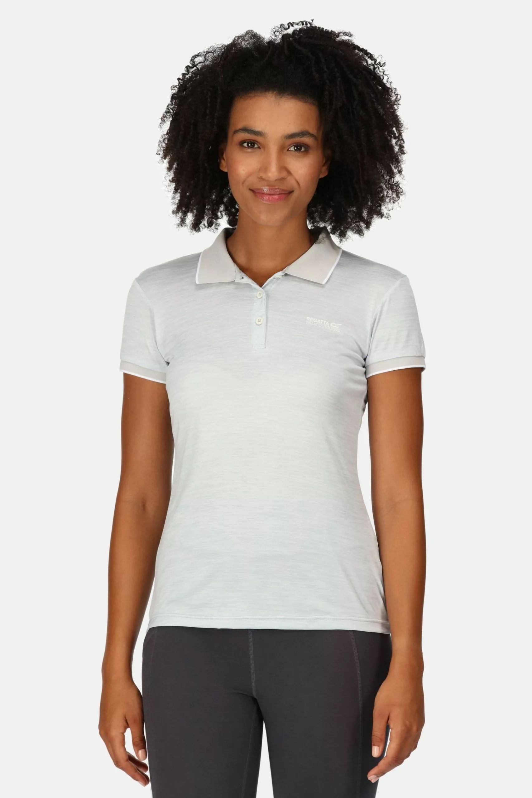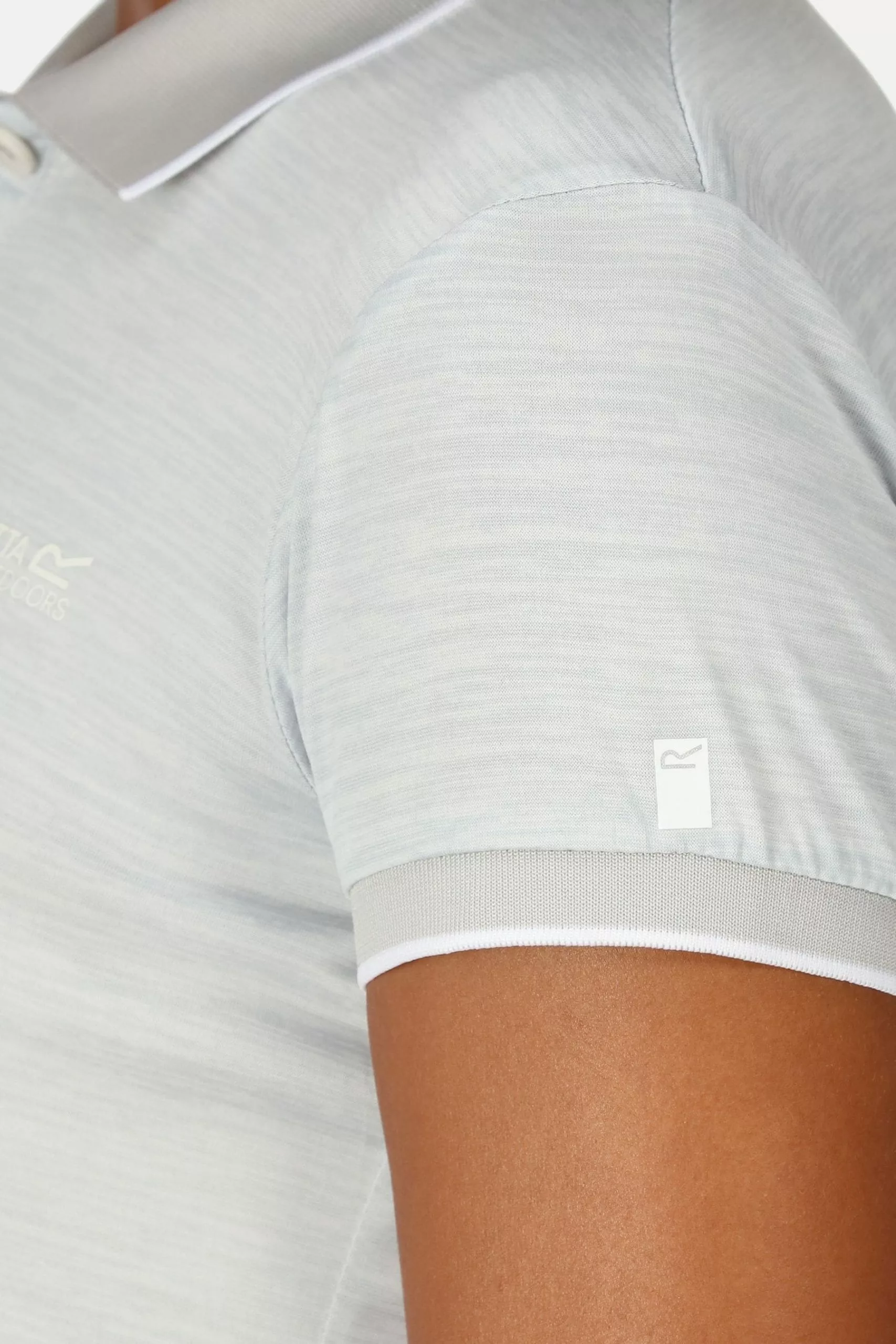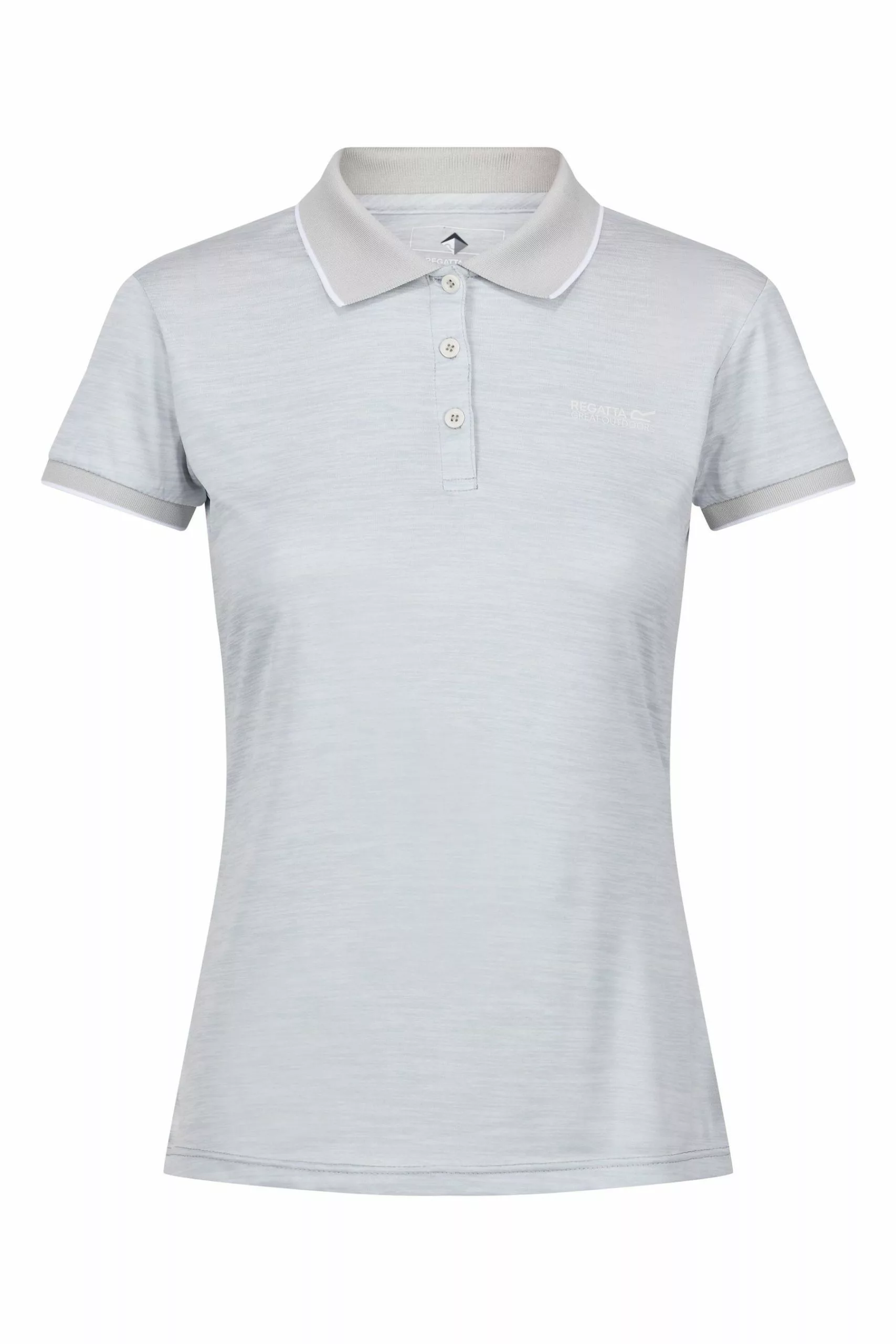 The women s Remex Short Sleeve Technical Polo Shirt from Regatta is made of quick drying stretch knit polyester with a classic three-button fastening and lightly ribbed collar and cuffs, and a contrast tipping stripe. With the signature R on the left sleeve.