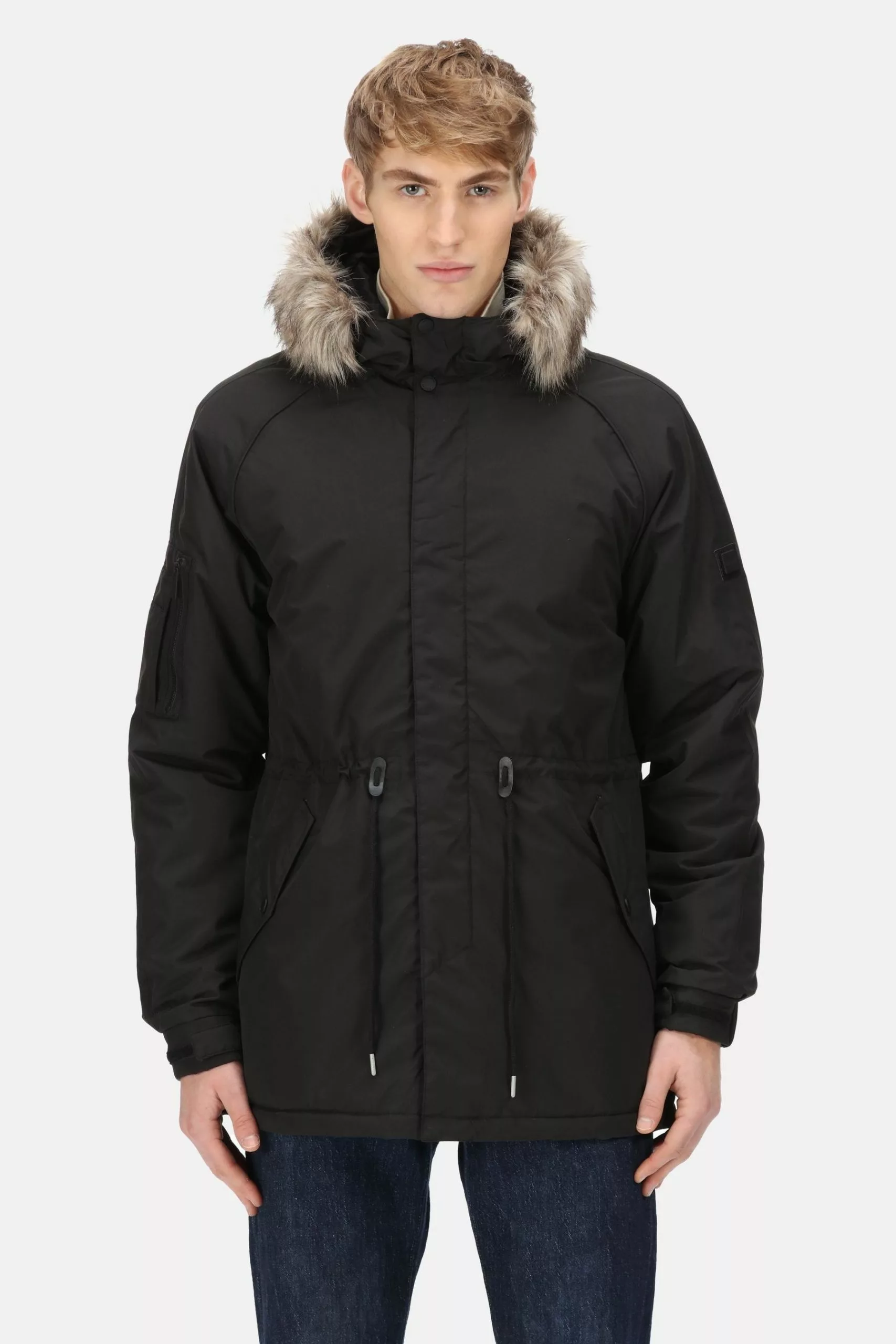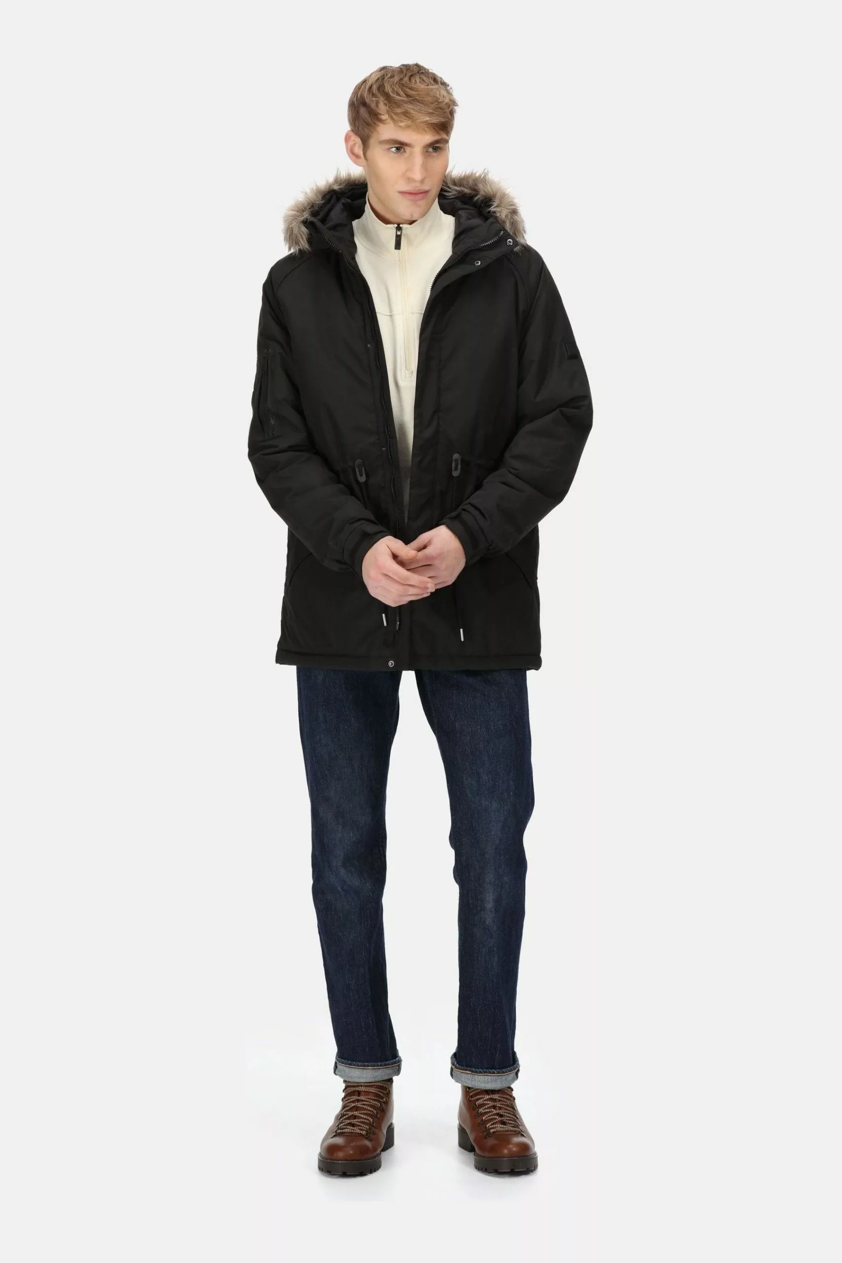 - Faux-fur trim to the hood