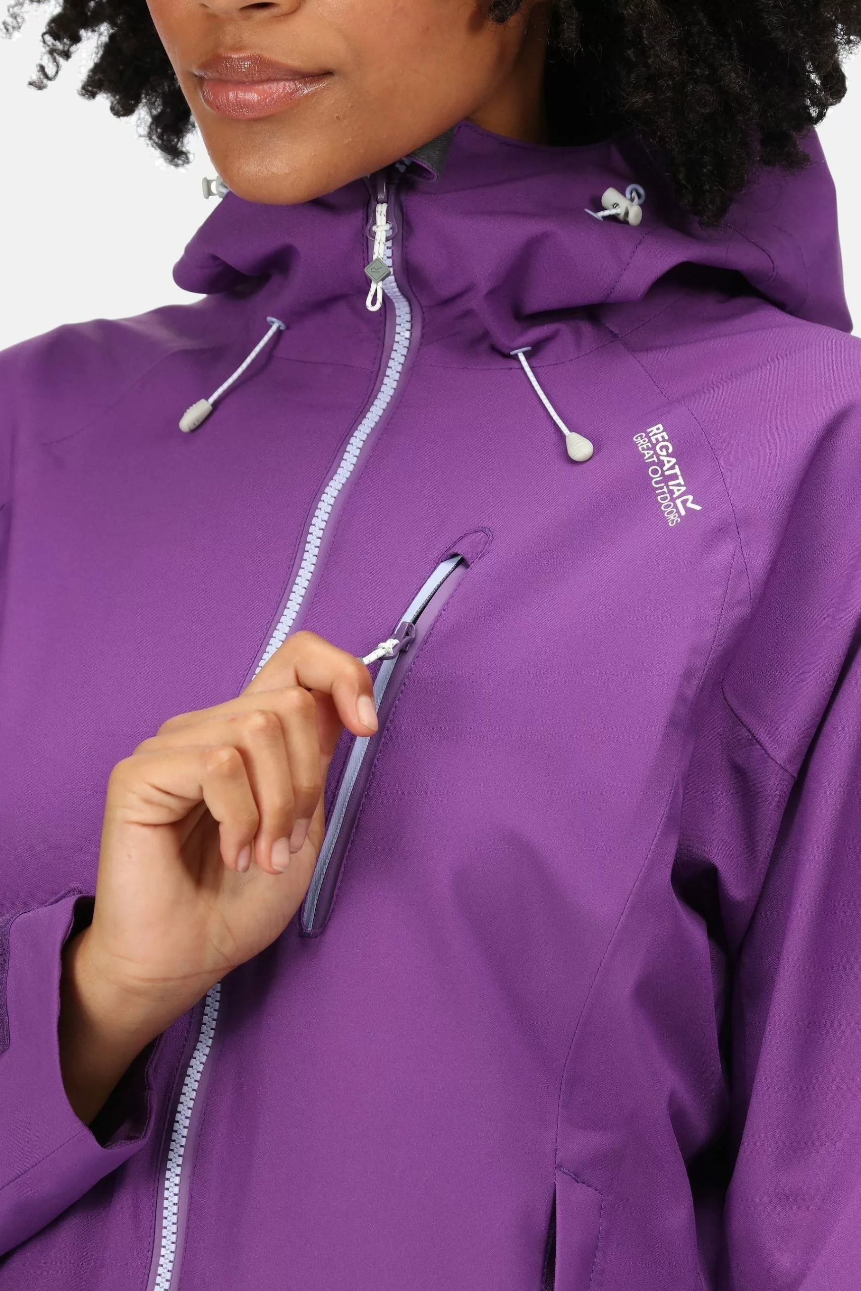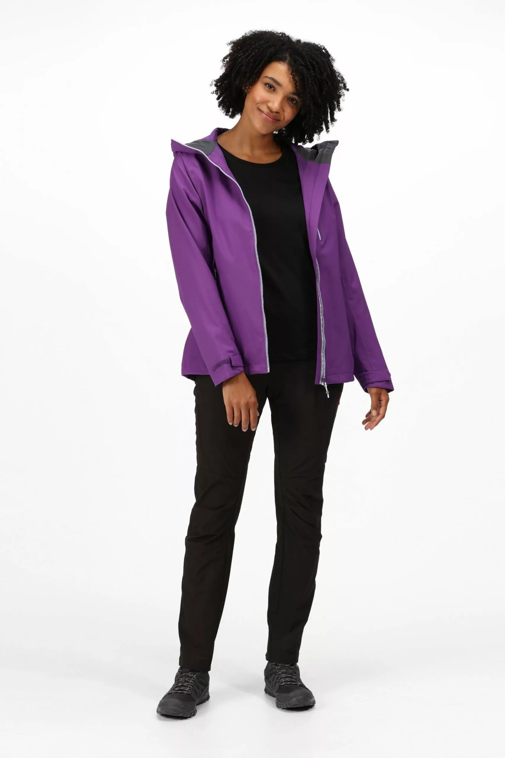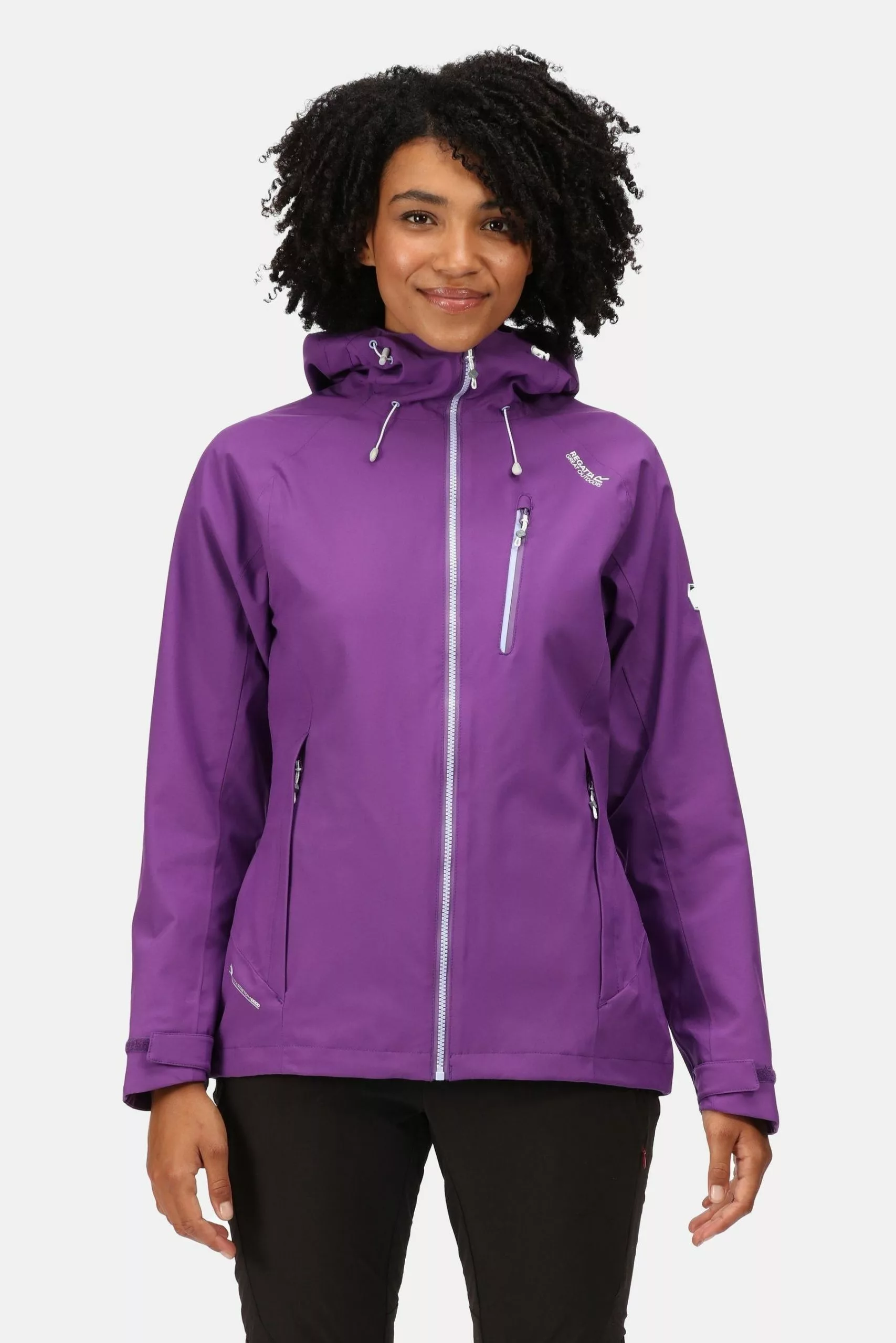 | The Women's Birchdale from Regatta. It s perfect for on-the-go protection. The women's jacket is made from waterproof and breathable fabric with added stretch to keep you moving. The bulk-free design makes sure nothing gets in the way. Pull on the hood if rainfalls. |